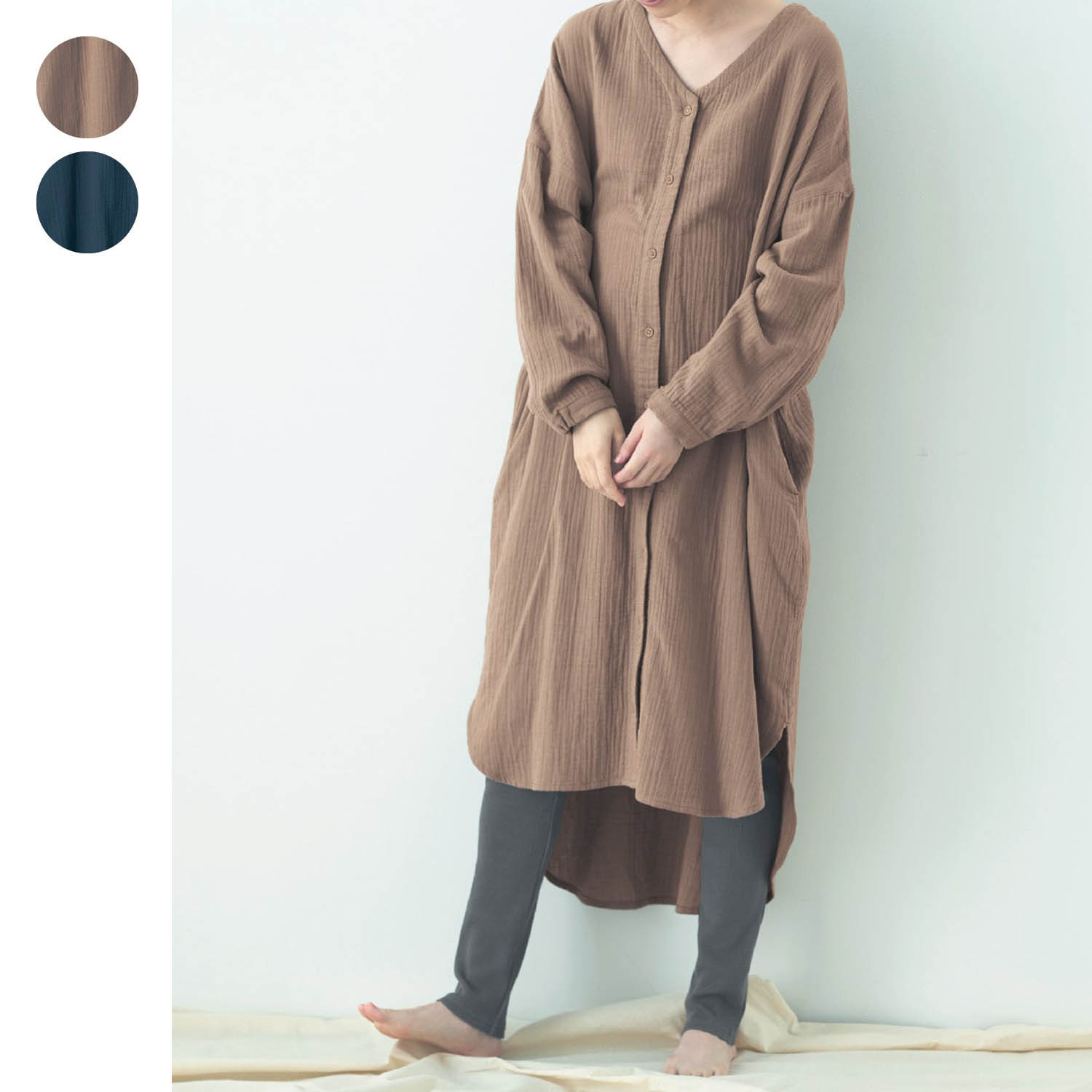 【ベルメゾン】入院準備に!マタニティサイズダブルガーゼワンピース & ワッフルレギンスパジャマ 【産前・産後 長袖】