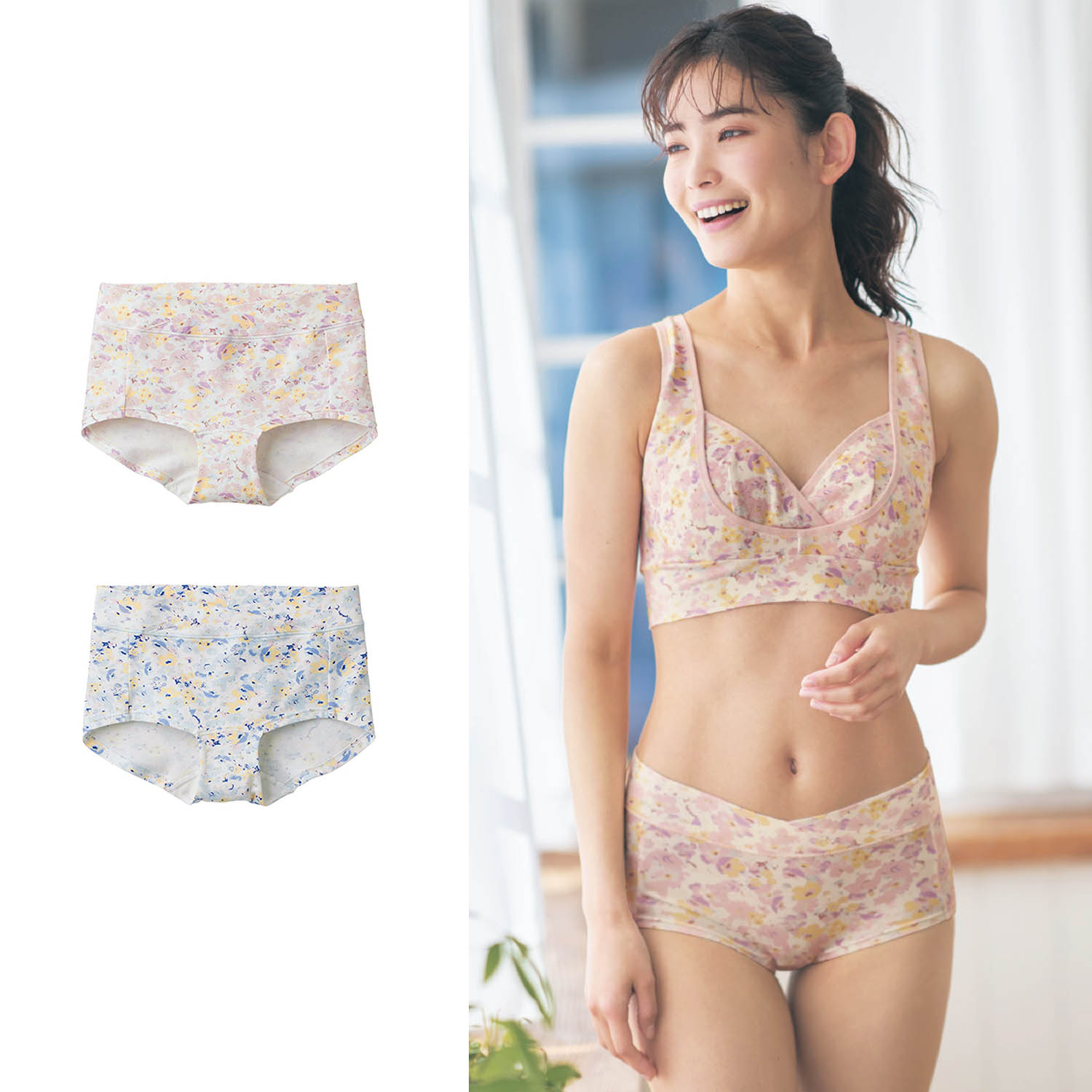―デザイン・スタイリング―・ストレスフリーなはき心地・産前から産後もらくちんボクサーショーツ・ローライズのボクサータイプ・ボトムからチラ見えしにくい・お尻はすっぽりと包んでくれる安心のはき心地ー機能ー・フロントクロス構造でお腹を締めつけにくい