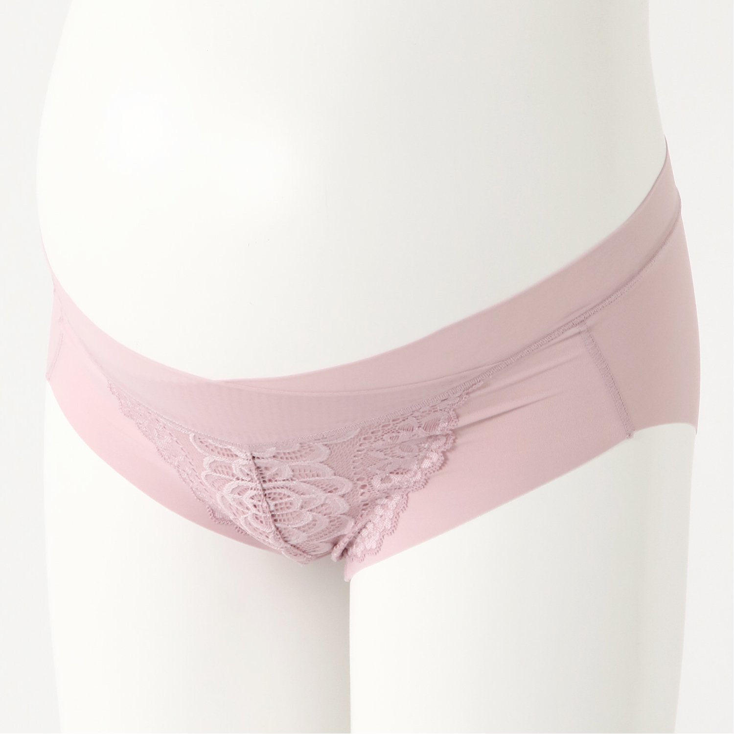 ―機能―・お腹にやさしくフィットするクロスデザイン―素材―・マチ裏はお肌にやさしい綿100%素材―デザイン・スタイリング―・大きくなるお腹でもラクにはけるローライズデザイン・縫い目がフラットなはき心地の良いシームレス仕様・上品な花柄のレース使いがおしゃれ