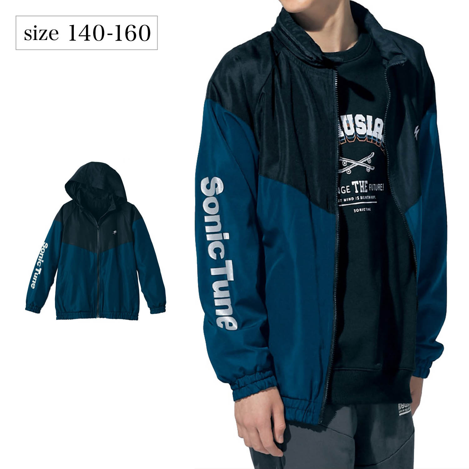 ―デザイン・スタイリング―・配色切替えがカッコいいウィンドブレーカー・袖 & 裾のゴム仕様で風を通さず防寒対策にも◎・左胸のロゴ刺繍がさりげないアクセント・フードを使わないときは収納可能―素材―・表側は撥水加工のタフタ素材で水を通しにくい・あったか裏地でサッと羽織れて体温調節にもSONIC TUNE(ソニックチューン)ソニックチューンは日常の着こなしにぴったりな「シンプルでカッコよく」を提案するオリジナルブランド。成長期の男の子に合わせたサイズや機能にこだわったアイテムを175サイズまで展開しています。