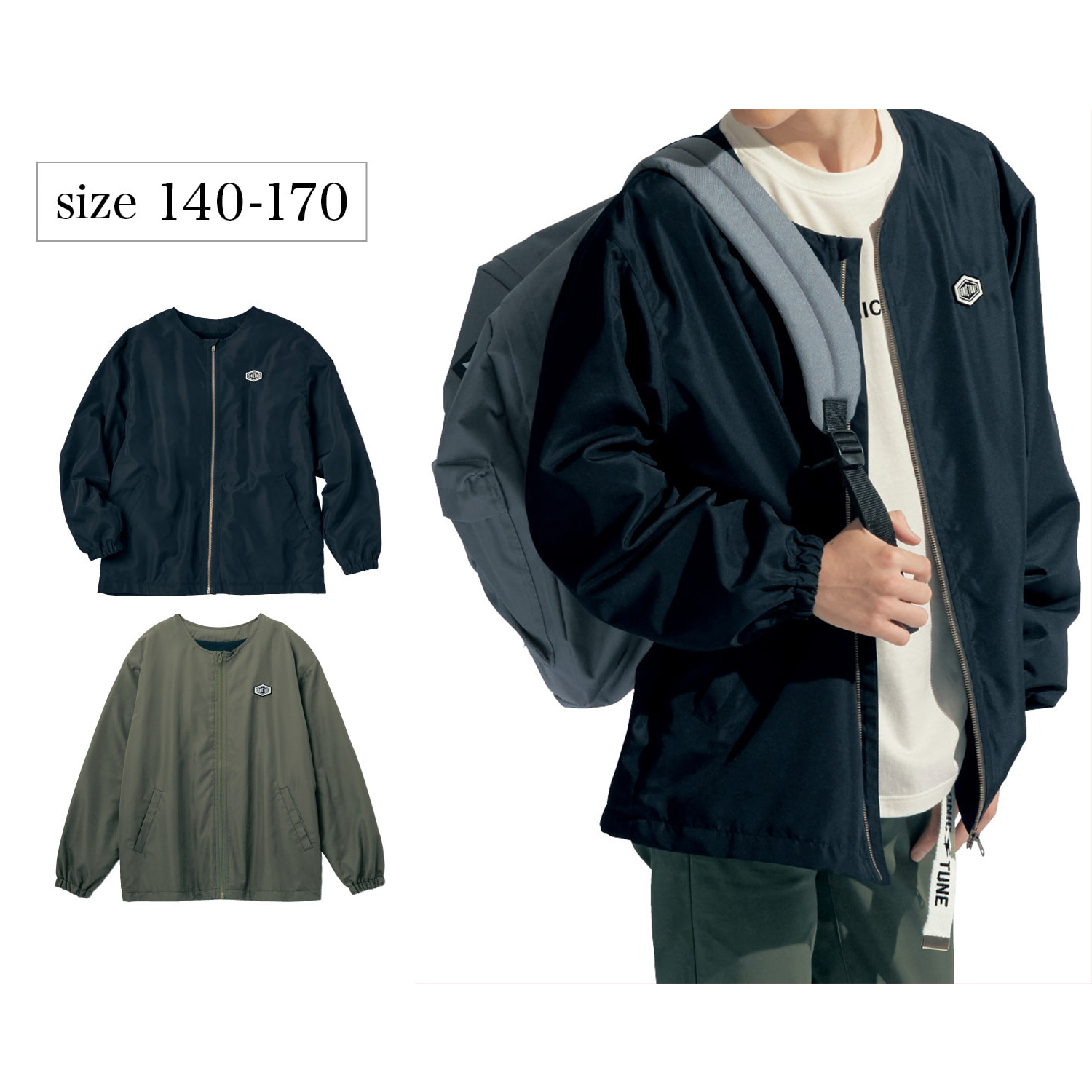 ―デザイン・スタイリング―・旬のノーカラーデザインを着まわしやすいシックなカラーで・左胸のシリコンワッペンがさり気ないワンポイント・サッと軽やかに羽織れて、秋から冬まで長く活躍―素材―・身頃の裏地があたたかな風合いのトリコット素材・袖裏はすべりの良いタフタ素材ー機能ー・表地は撥水加工で急な雨にも対応SONIC TUNE(ソニックチューン)ソニックチューンは日常の着こなしにぴったりな「シンプルでカッコよく」を提案するオリジナルブランド。成長期の男の子に合わせたサイズや機能にこだわったアイテムを175サイズまで展開しています。