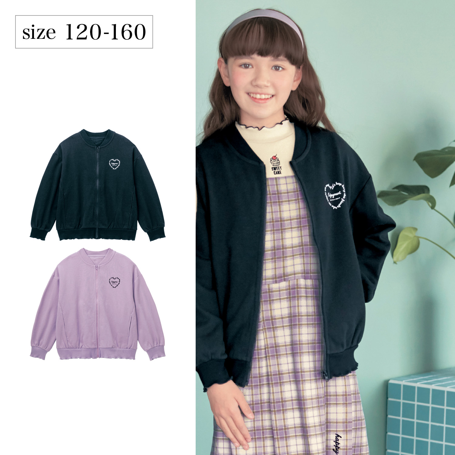 ―デザイン・スタイリング―・バックにレースアップのリボンを効かせて、後ろ姿もしっかり可愛く・袖口と裾もメロウフリルで愛らしさを後押し・左胸のプリントもキュートなアクセント―素材―・身生地は柔らかな綿100%裏毛素材ー機能ー・フロントはファスナー仕様で着脱スムーズ・便利な左右ポケット付き