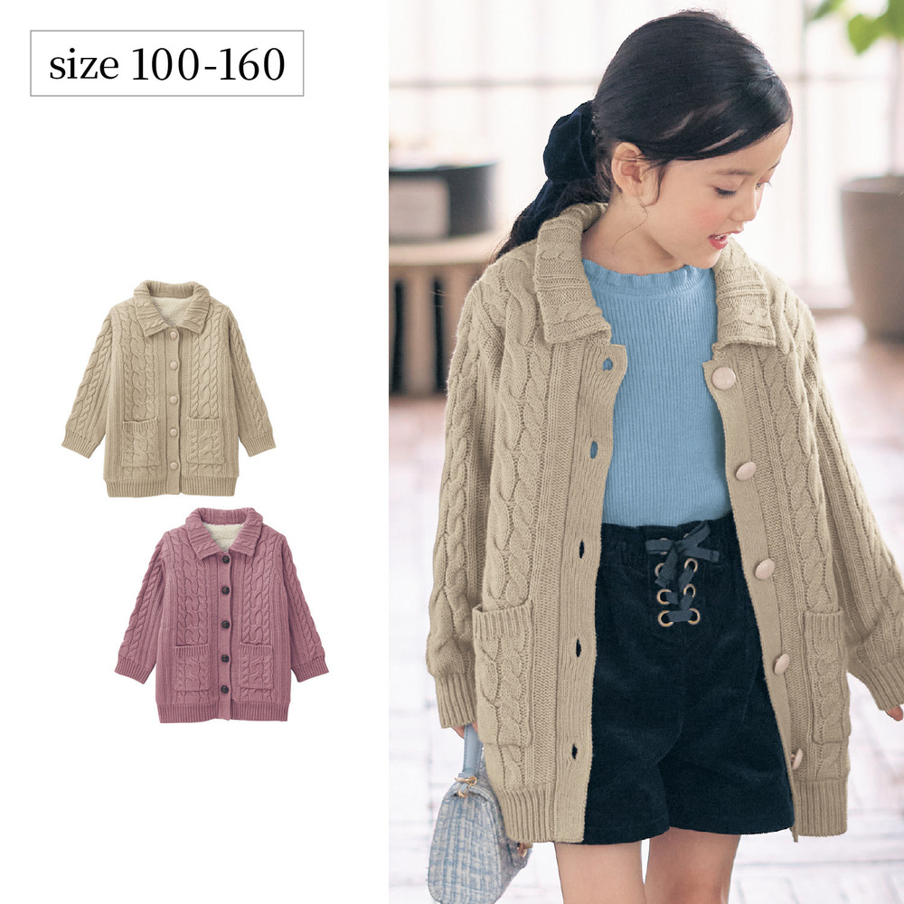 【ジータ/GITA】襟付き裏ボアケーブル柄ニットコート 【子供服 防寒】