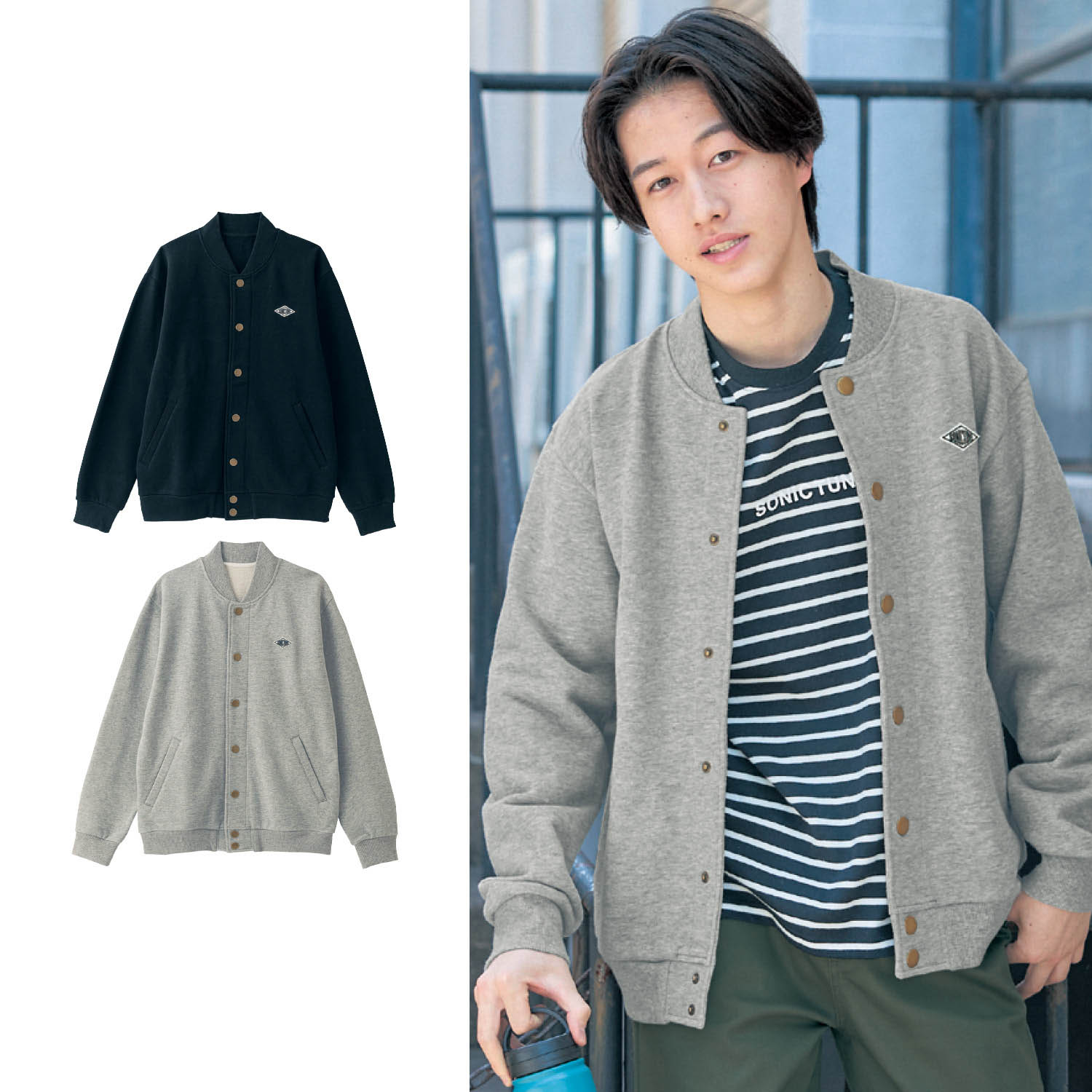 ―デザイン・スタイリング―・どんなアイテムにも合わせやすいシンプルなブルゾン・しっかりとした着心地と、伸縮性のある着やすさが魅力・胸元のワッペンとゴールド調ボタンがアクセントに―素材―・肉厚な裏毛素材でしっかりとした生地感・身生地綿100%でサラリとした肌ざわりSONIC TUNE(ソニックチューン)ソニックチューンは日常の着こなしにぴったりな「シンプルでカッコよく」を提案するオリジナルブランド。成長期の男の子に合わせたサイズや機能にこだわったアイテムを175サイズまで展開しています。
