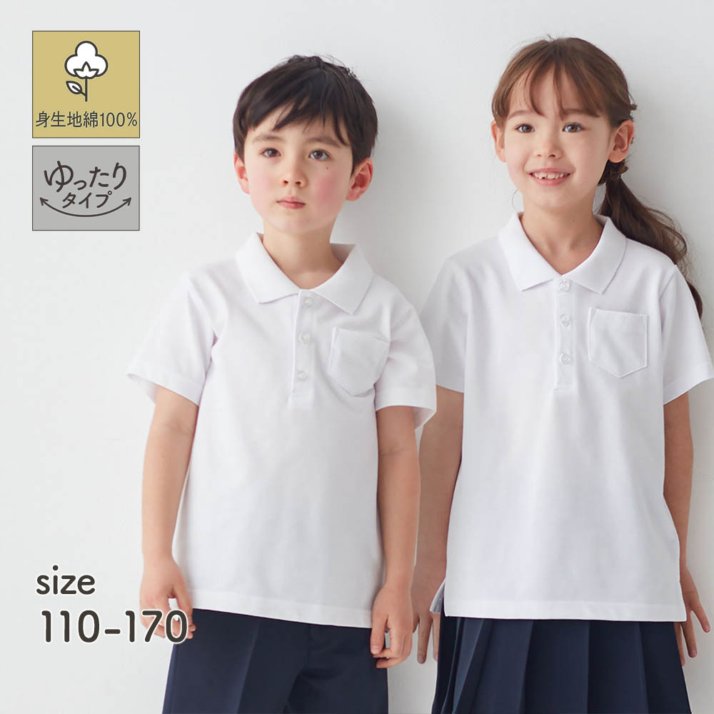 ―デザイン・スタイリング―・通園、通学に活躍する定番デザインの半袖ポロシャツ・肩幅や腕回り、身幅などをひとまわり大きくしたゆったりタイプ・両サイドにスリット入り・洗い替え用が手軽に揃えられ、リピートしやすい価格も人気―素材―・肌あたりがやさしい綿100%素材もうれしいポイントー機能ー・生地に穴をあけずに名札を付けられる「名札付け用ホール」付き・内側に油性ペンで直接書けてにじみにくいお名前スペース付き