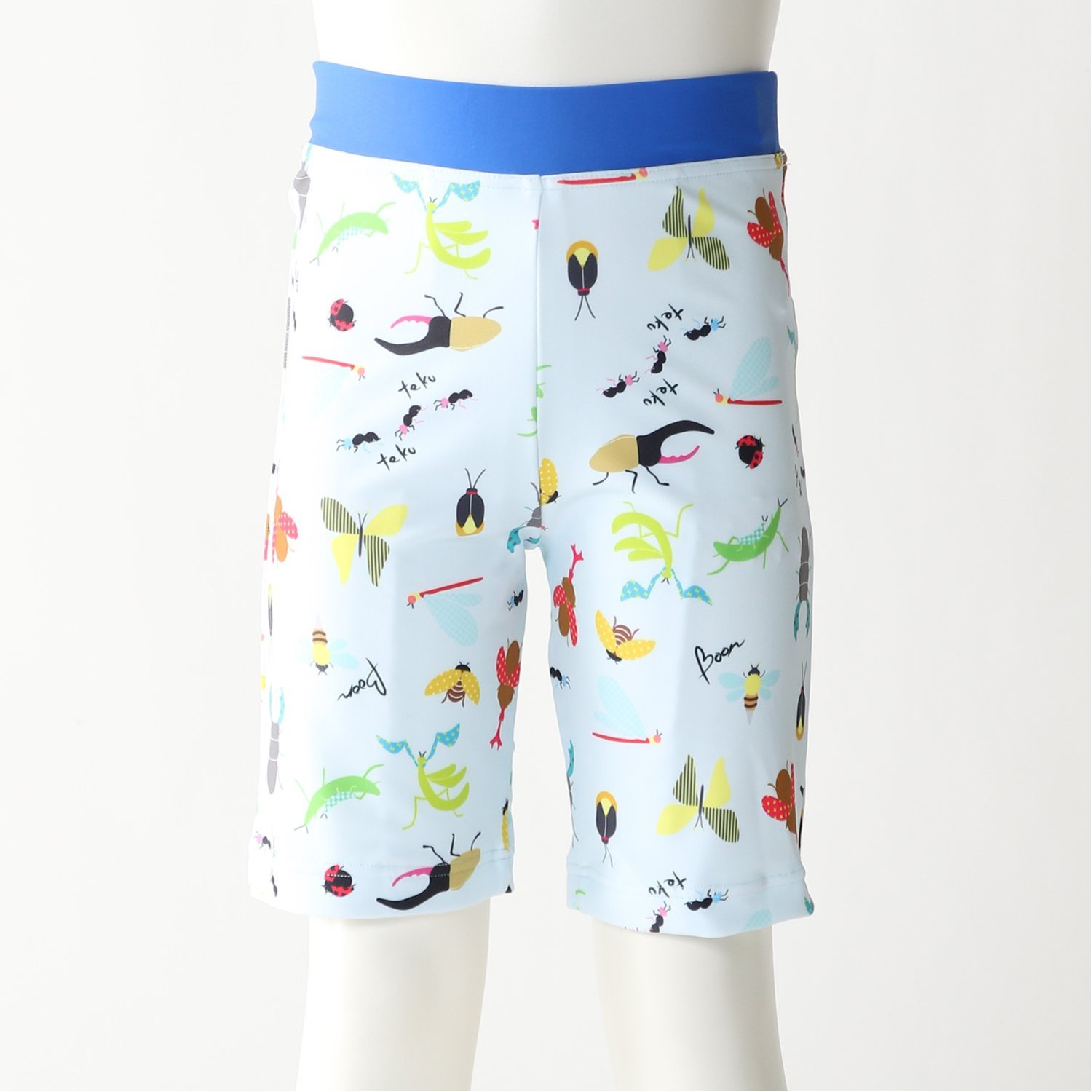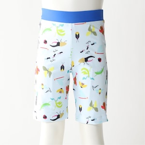 ―デザイン・スタイリング―・カラフルな昆虫モチーフのプリントが楽しさ満点・程よくフィットする長めの丈感・水遊びシーンで親御さんが見つけやすいのもうれしい―機能―・UVカット効果で紫外線からしっかりお肌をカバー・ウエストはひも無しの総ゴム仕様で脱ぎはきラクラク・前股部分は裏地付きで透け防止に◎