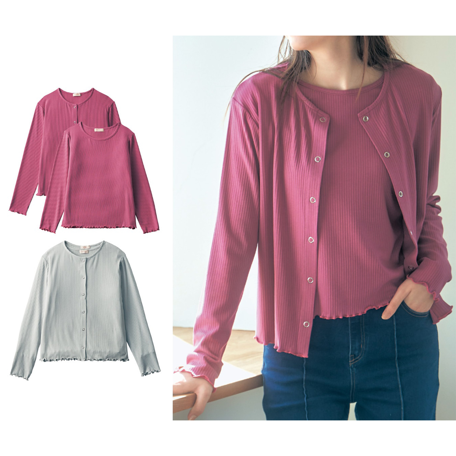 【2点セット】九分袖プルオーバー/カーディガン▼九分袖プルオーバー・重ね着してももたつきにくい九分袖・袖口と裾のメロウ始末が女子ポイント・細かいリブ目のシンプルデザイン・レーヨン混素材でなめらかな質感▼カーディガン・トレンドのリングドットボタンが大人っぽい・袖口と裾のメロウ始末が女子ポイント・細かいリブ目のシンプルデザイン・レーヨン混素材でなめらかな質感Papel lapiz(パペルラピス)ワタシの「好き」にフィットする、トレンドをおさえた好感度の高いおしゃれを提案するブランド。今のリアルなジュニア & ティーンの体形に合わせた独自のサイズを設定し、細部の着心地にもこだわりました。