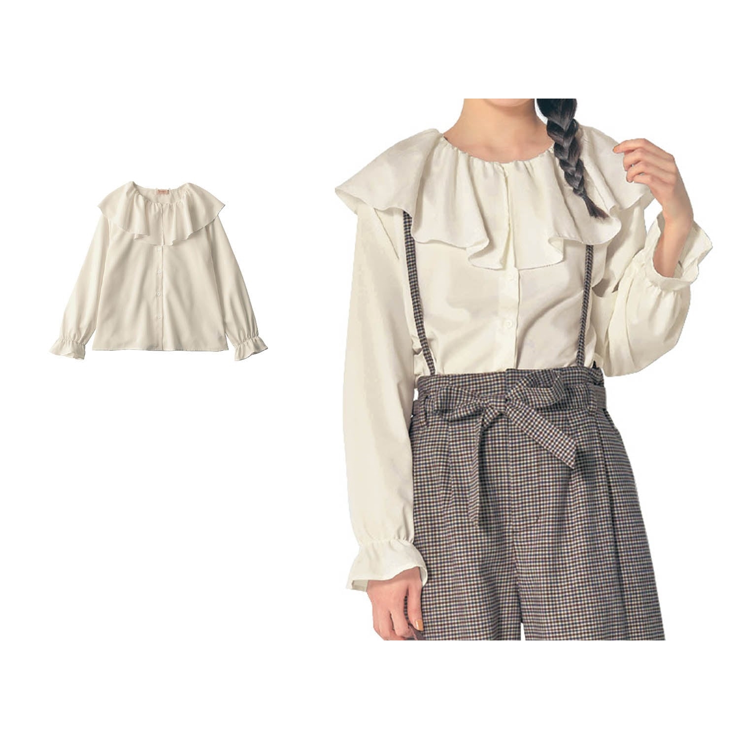 ―デザイン・スタイリング―・ギャザーたっぷりの襟がおしゃれ映えする一枚・袖口はゴム & フリルのキャンディスリーブデザイン・ニットやプルオーバーとのレイヤードも◎・一枚で着ても存在感のある360度フリル襟―素材―・薄手のポリエステル素材で柔らかな着心地Papel lapiz(パペルラピス)ワタシの「好き」にフィットする、トレンドをおさえた好感度の高いおしゃれを提案するブランド。今のリアルなジュニア & ティーンの体形に合わせた独自のサイズを設定し、細部の着心地にもこだわりました。