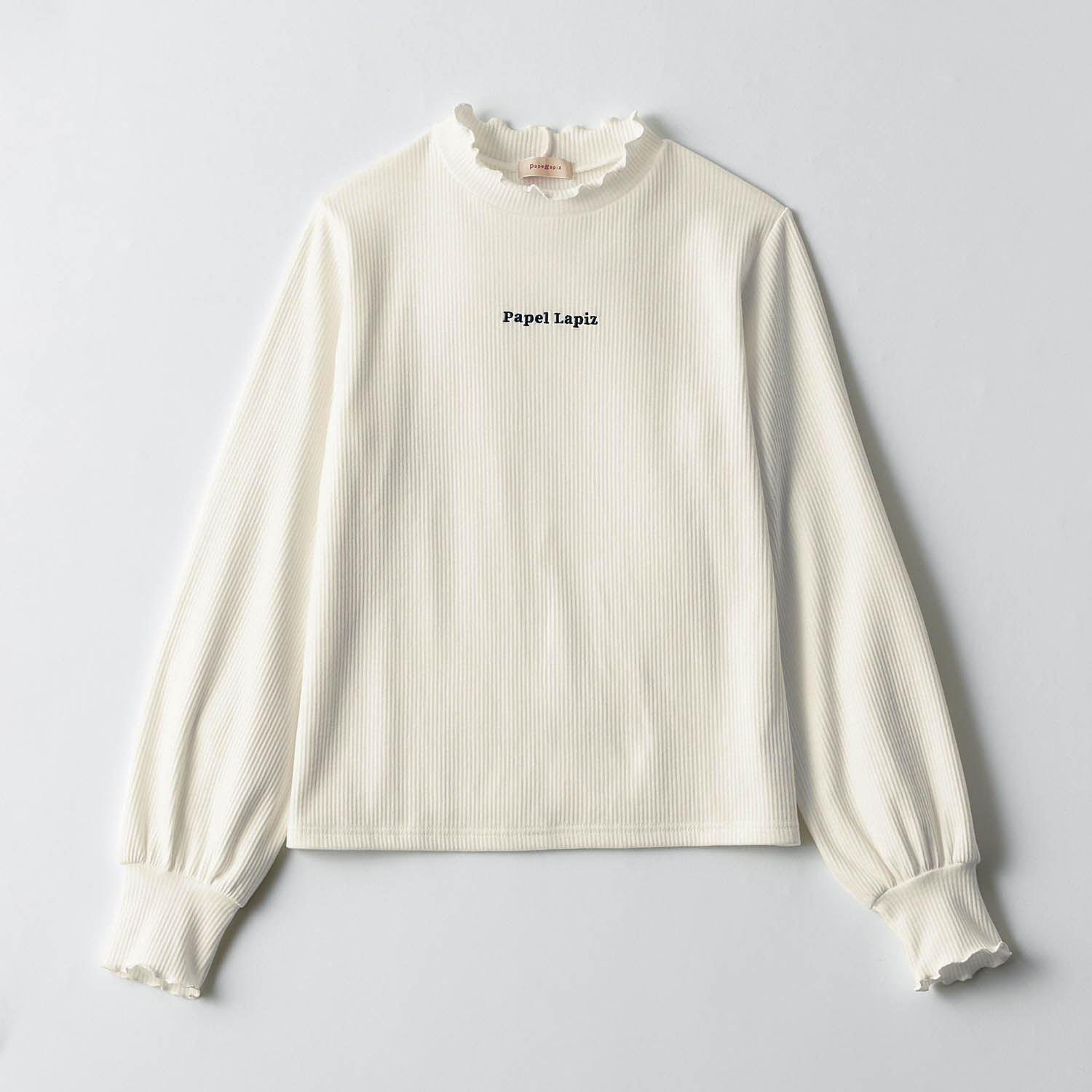 ―デザイン・スタイリング―・メロウ始末のプチハイネックが大人可愛い・キュッと絞ったメロウな袖口が女の子らしい・胸元のロゴ刺繍がさりげないアクセント・一枚でも着映えするボリューム袖・インナーとしても使いやすいシンプルデザイン―素材―・ストレッチ感のあるリブ素材Papel lapiz(パペルラピス)ワタシの「好き」にフィットする、トレンドをおさえた好感度の高いおしゃれを提案するブランド。今のリアルなジュニア & ティーンの体形に合わせた独自のサイズを設定し、細部の着心地にもこだわりました。