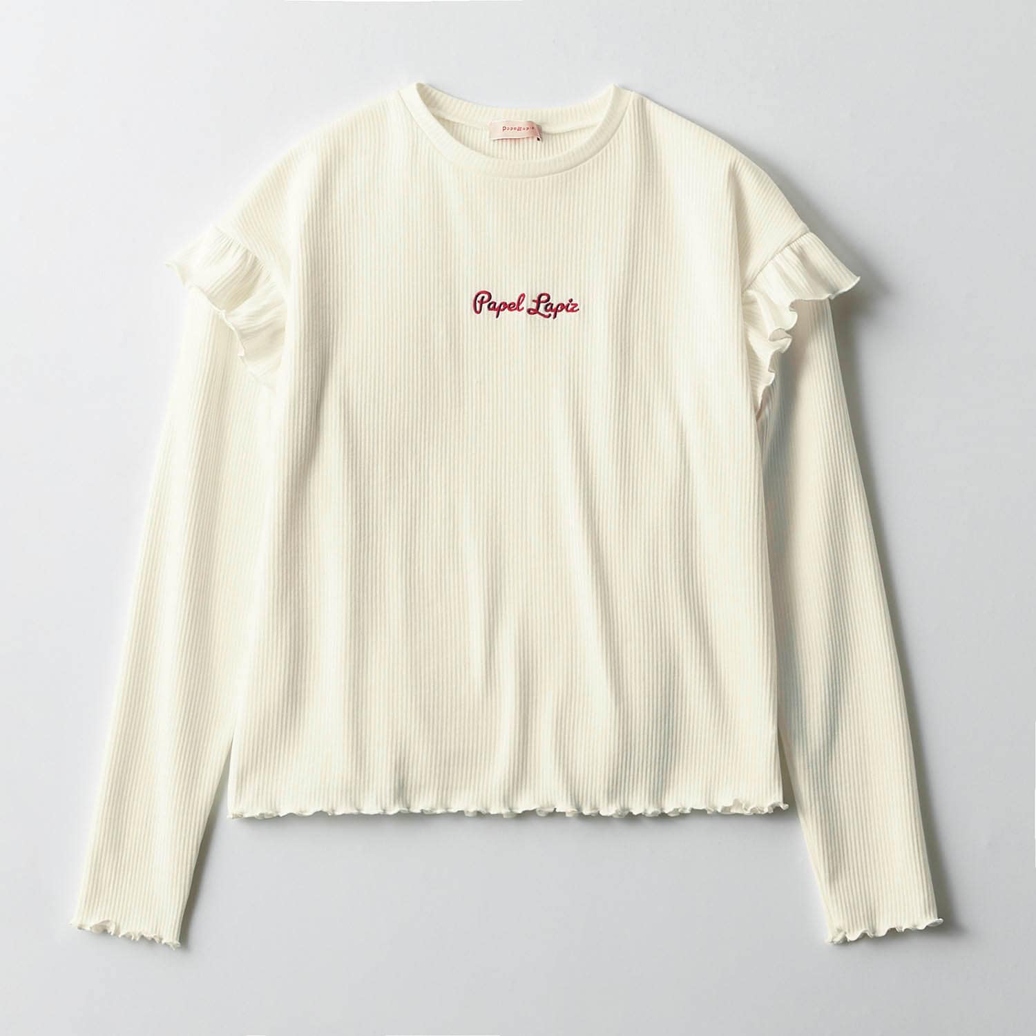 ―デザイン・スタイリング―・袖フリルをあしらって女の子らしさをプラス・ゆったり着られるドロップショルダー・袖口と裾のメロウ始末がガーリーな雰囲気・胸元の配色ロゴ刺繍が可愛いアクセント―素材―・伸縮性のあるリブ素材Papel lapiz(パペルラピス)ワタシの「好き」にフィットする、トレンドをおさえた好感度の高いおしゃれを提案するブランド。今のリアルなジュニア & ティーンの体形に合わせた独自のサイズを設定し、細部の着心地にもこだわりました。