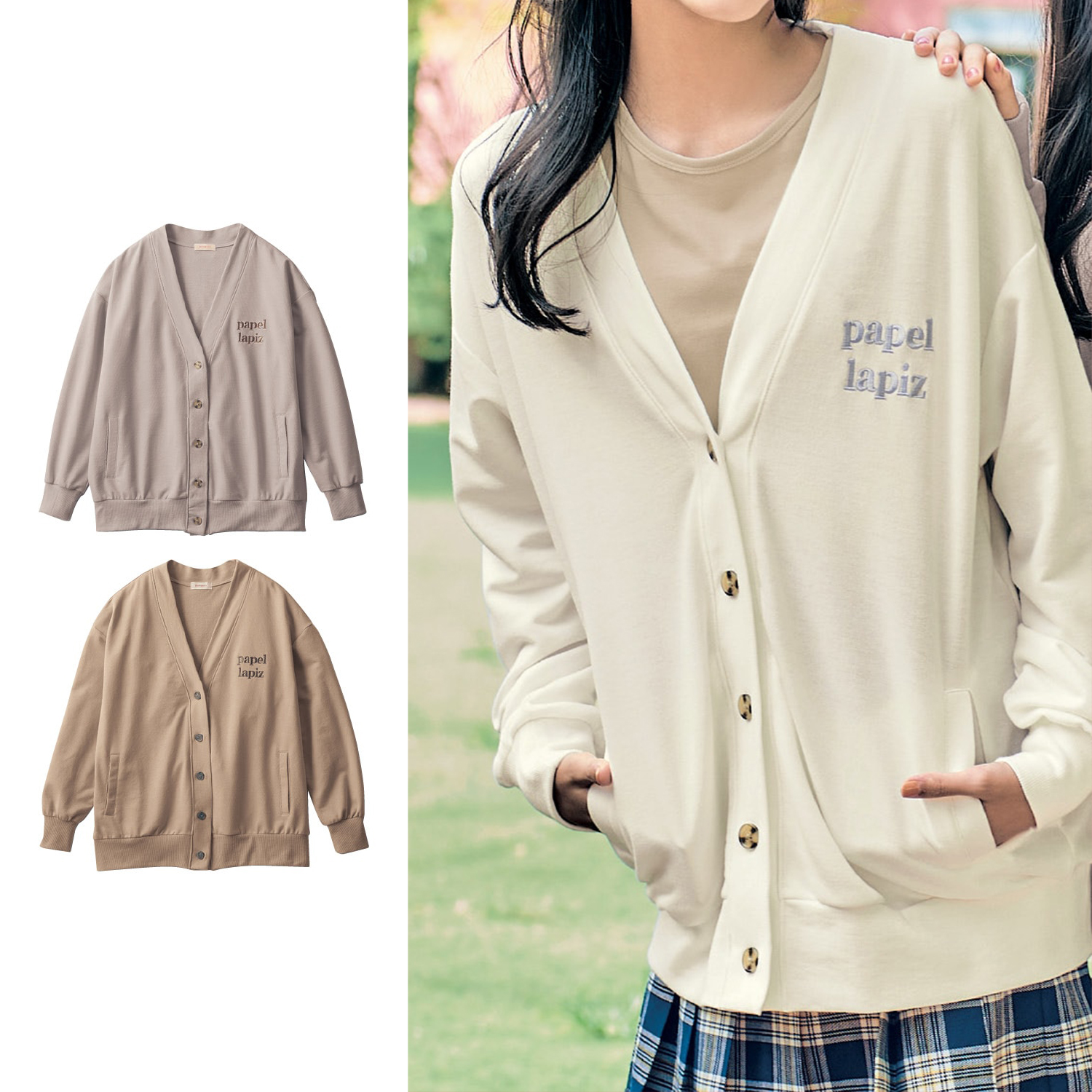 ―デザイン・スタイリング―・トレンドのショート丈でスタイルアップ・大人っぽいリングボタンがアクセント・左胸の刺繍ロゴがさりげないポイントに・定番から差し色まで選べるカラー展開・スカートにもパンツにも合わせやすい・ボタンを閉じるとプルオーバーとしても―素材―・通年着やすいミニ裏毛素材Papel lapiz(パペルラピス)ワタシの「好き」にフィットする、トレンドをおさえた好感度の高いおしゃれを提案するブランド。今のリアルなジュニア & ティーンの体形に合わせた独自のサイズを設定し、細部の着心地にもこだわりました。