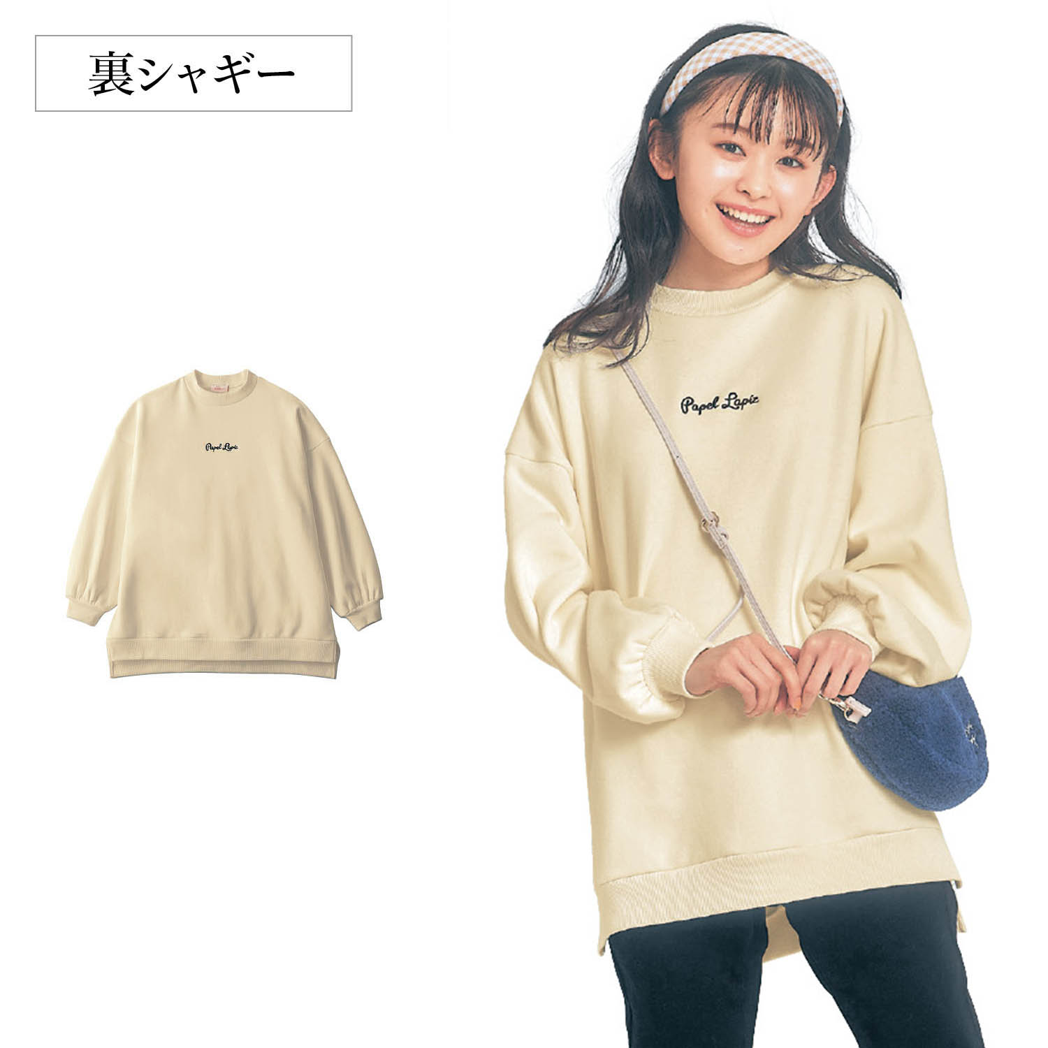 ―デザイン・スタイリング―・モックネックデザインで洗練された印象に・サイドスリット入りで抜け感をプラス・前後差のあるデザインは体型カバーにも◎・長め丈でおしりまで暖かさキープ・胸元のロゴ刺繍がさりげないアクセント・ゆるシルエットで細身ボトムスと好相性―素材―・こっそり暖かい裏シャギー素材Papel lapiz(パペルラピス)ワタシの「好き」にフィットする、トレンドをおさえた好感度の高いおしゃれを提案するブランド。今のリアルなジュニア & ティーンの体形に合わせた独自のサイズを設定し、細部の着心地にもこだわりました。