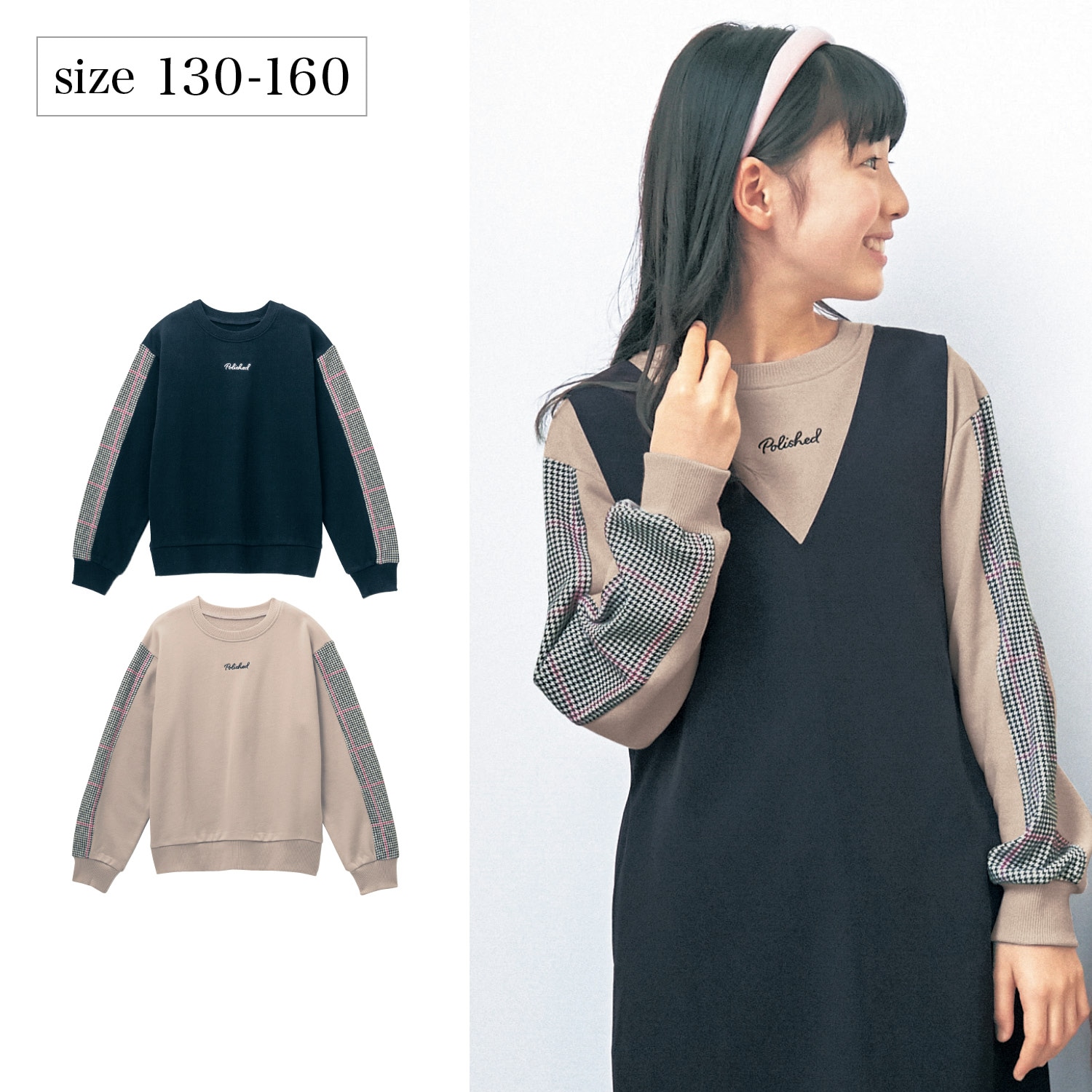 【ベルメゾン】袖チェック切替え裏毛プルオーバー 【子供服 長袖】
