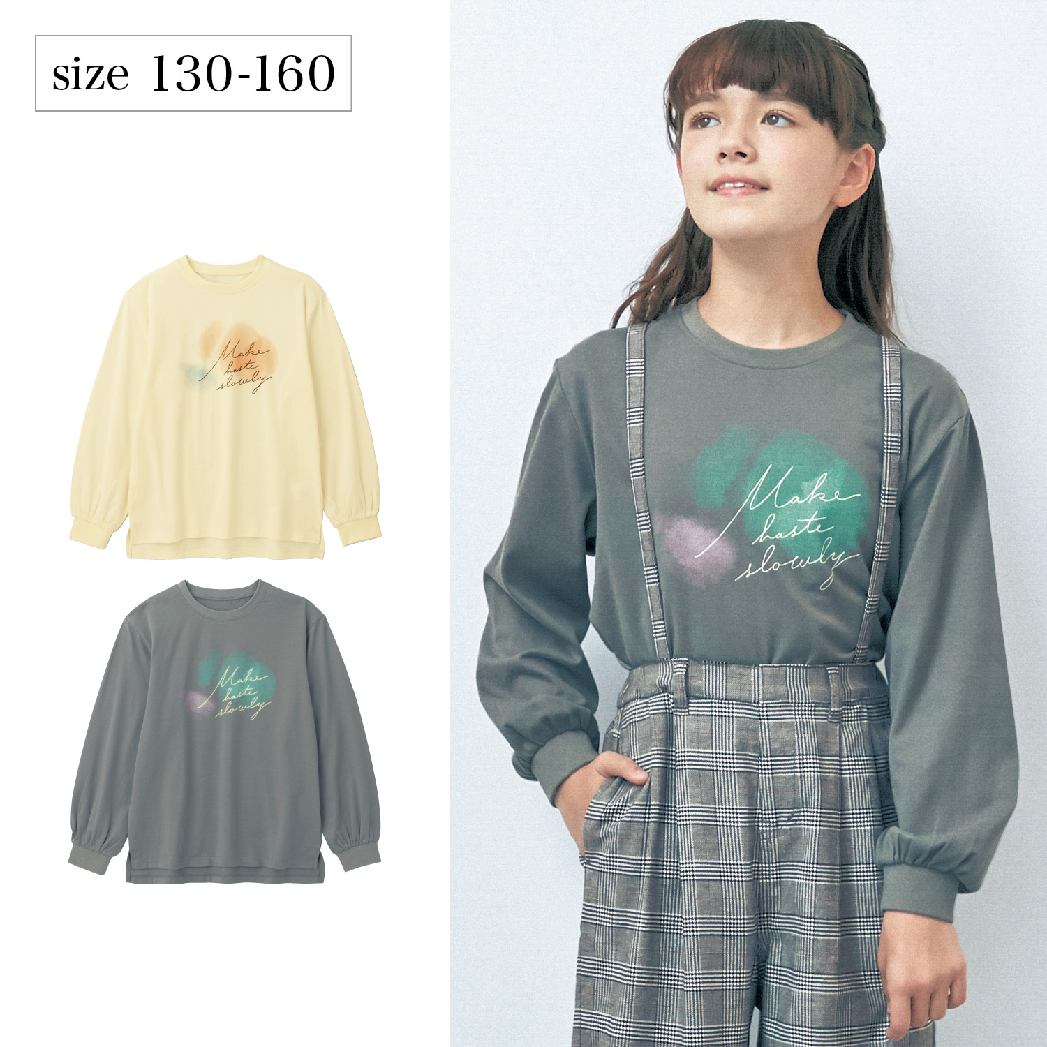 【ベルメゾン】裾スリットプリント長袖Tシャツ