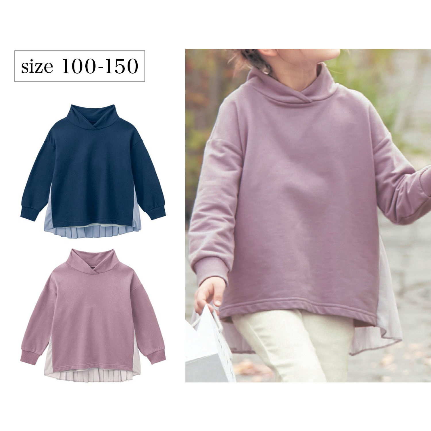 ―デザイン・スタイリング―・レディースで人気のバックプリーツデザイン・フード風襟プルオーバーで愛らしさがアップ・ママに負けないおしゃれセンスを楽しめる1着―素材―・本体部分は綿100%のミニ裏毛素材