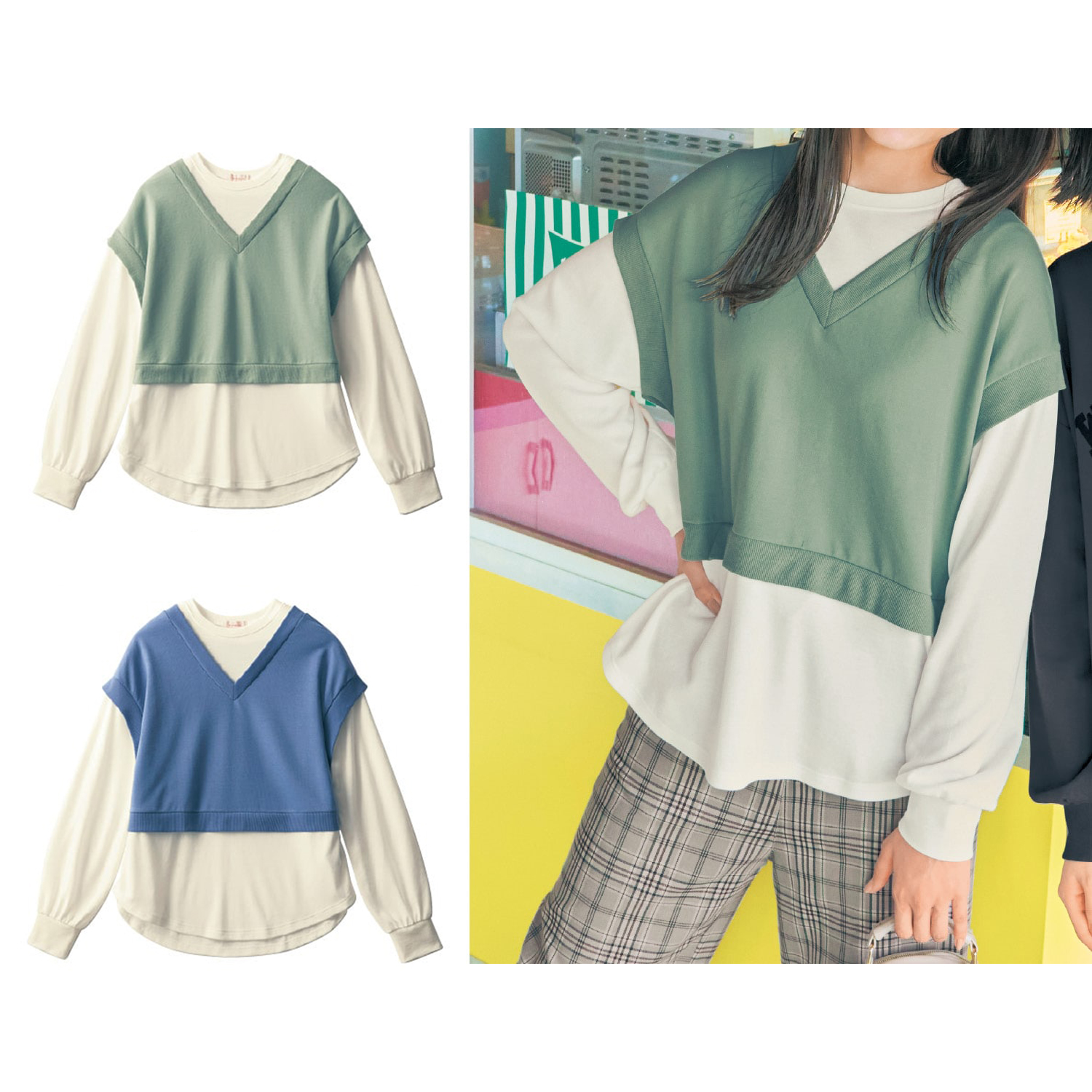 ―デザイン・スタイリング―・短丈ベスト×長袖Tシャツのレイヤード風・一枚でトレンドコーデがソク完成・ベストのくすみカラーが今っぽい・Tシャツの裾は前後差のあるラウンドデザイン・ベストはすっきり見えるVネック仕様―素材―・ベストは通年着やすいミニ裏毛素材・Tシャツ部分はなめらかなスムース素材Papel lapiz(パペルラピス)ワタシの「好き」にフィットする、トレンドをおさえた好感度の高いおしゃれを提案するブランド。今のリアルなジュニア & ティーンの体形に合わせた独自のサイズを設定し、細部の着心地にもこだわりました。