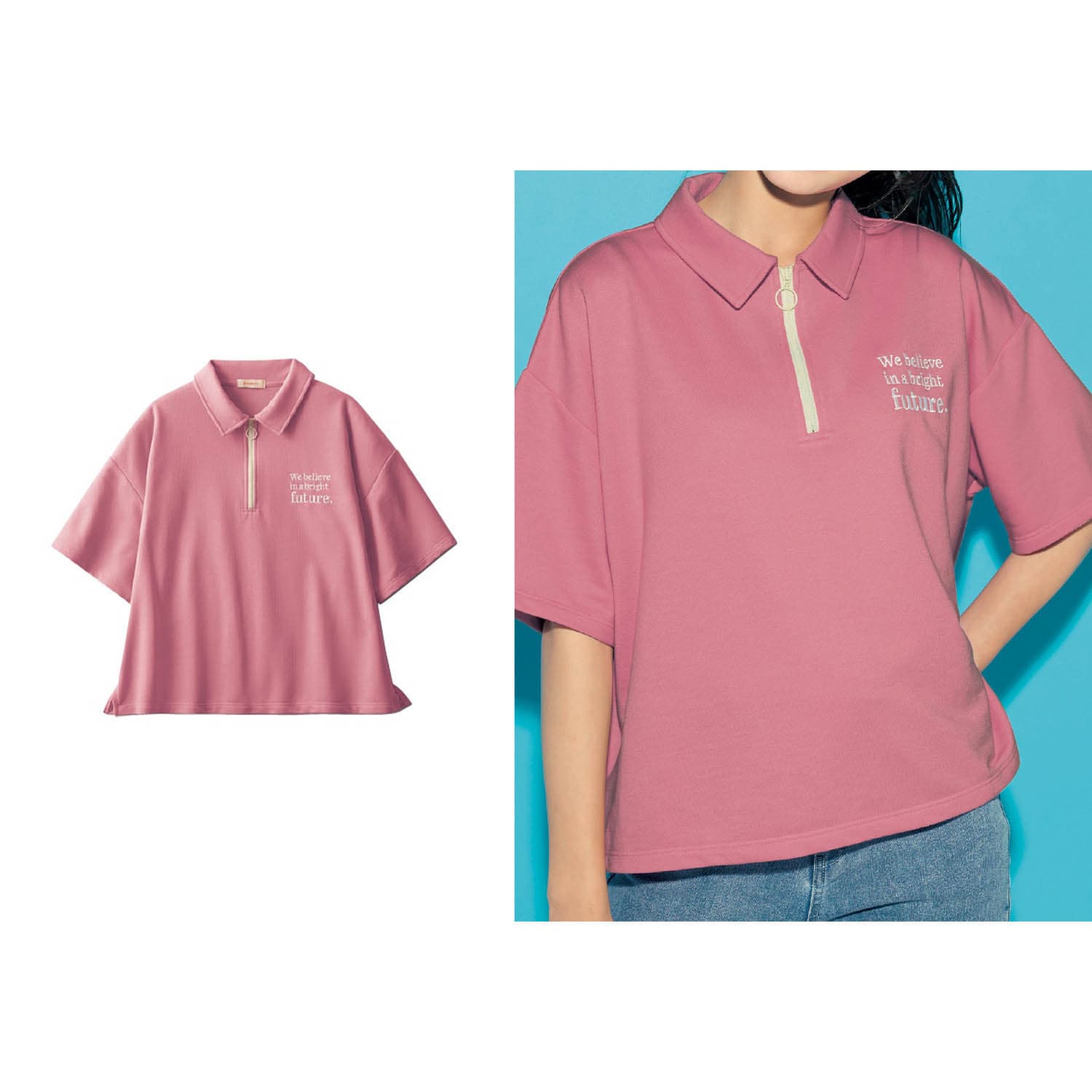 ―デザイン・スタイリング―・スポーティなポロ襟デザイン・配色ジップとリングスライダーがポイント・左胸にロゴ刺繍入り・身幅広めのゆったりシルエット・後ろ丈長めのサイドスリット仕様―素材―・通年着やすいミニ裏毛素材Papel lapiz(パペルラピス)ワタシの「好き」にフィットする、トレンドをおさえた好感度の高いおしゃれを提案するブランド。今のリアルなジュニア & ティーンの体形に合わせた独自のサイズを設定し、細部の着心地にもこだわりました。