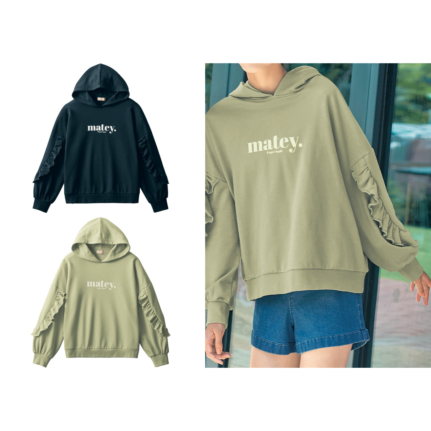 ―デザイン・スタイリング―・ガーリーな袖フリルデザイン・胸元に大きめのロゴプリントをトッピング・ボリューミィなシルエットが女の子らしい―素材―・通年着やすいミニ裏毛素材Papel lapiz(パペルラピス)ワタシの「好き」にフィットする、トレンドをおさえた好感度の高いおしゃれを提案するブランド。今のリアルなジュニア & ティーンの体形に合わせた独自のサイズを設定し、細部の着心地にもこだわりました。