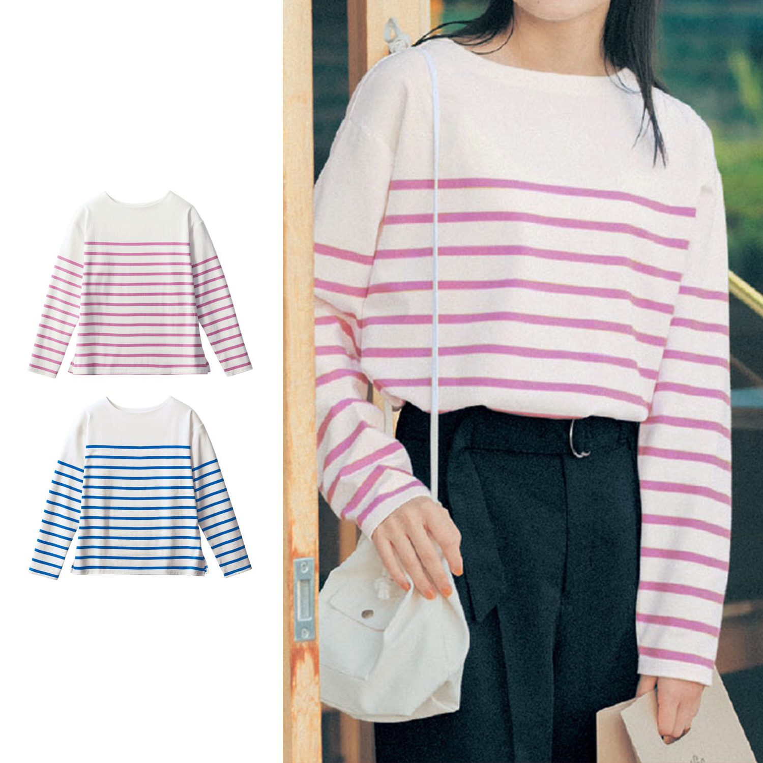 ―デザイン・スタイリング―・ゆるっと着こなせるワイドシルエット・無地部分のあるパネルボーダーが大人っぽい・サイドスリット入りで抜け感をプラス・ボートネックで洗練された印象に・定番ボトムと合わせるだけでおしゃれカジュアルに―素材―・身生地は通年着やすい綿100%の天竺素材STANDARD me 「自分らしいおしゃれを楽しみたい」「季節に合った着心地のいい服が好き」「流行もちょっぴり気になる」。そんな女の子が気兼ねなく着られるブランド STANDRD me 。365日どんなシーンでも着やすく、がんばらなくてもサマになるデザインやシルエット。シンプルなのにトレンド感も忘れない。そんな "ちょうどいい" お洋服がそろっています。