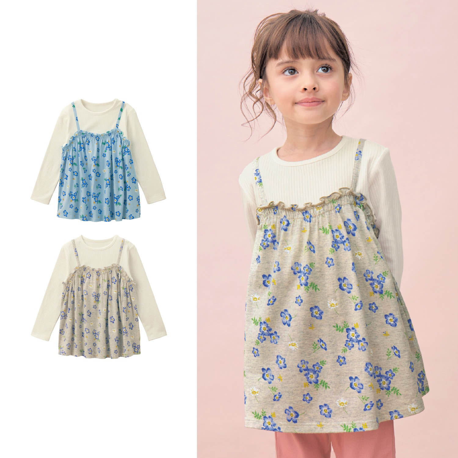 【ベルメゾン】花柄ビスチェ風長袖リブTシャツ 【子供服】