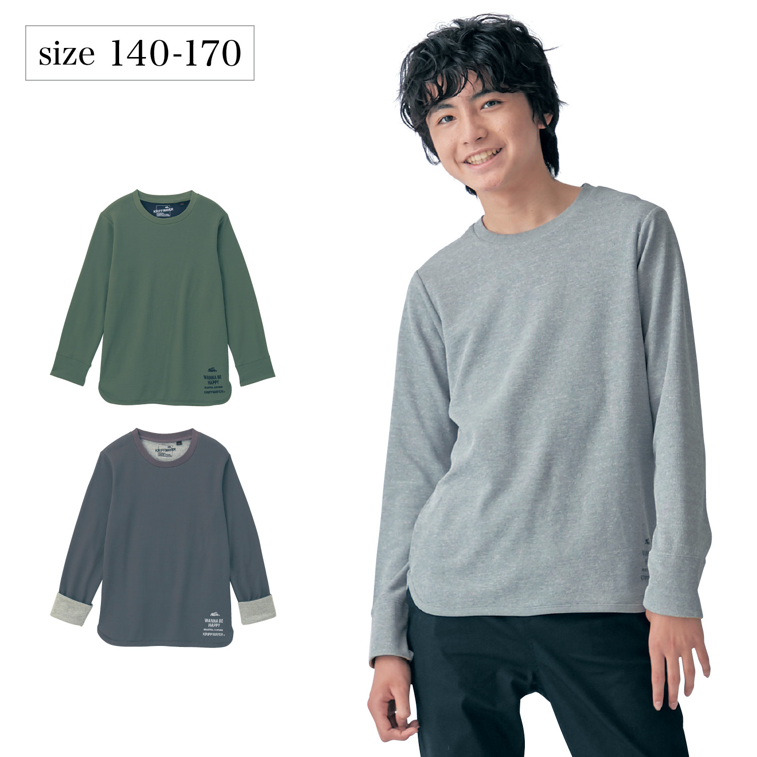 ―デザイン・スタイリング―・着回し力抜群のシンプルな長袖Tシャツ・ラウンドした裾がこなれた印象・裏地は配色で、折り返してコーデの差し色に―素材―・表面は凹凸のある軽い素材で、サラッとした着心地