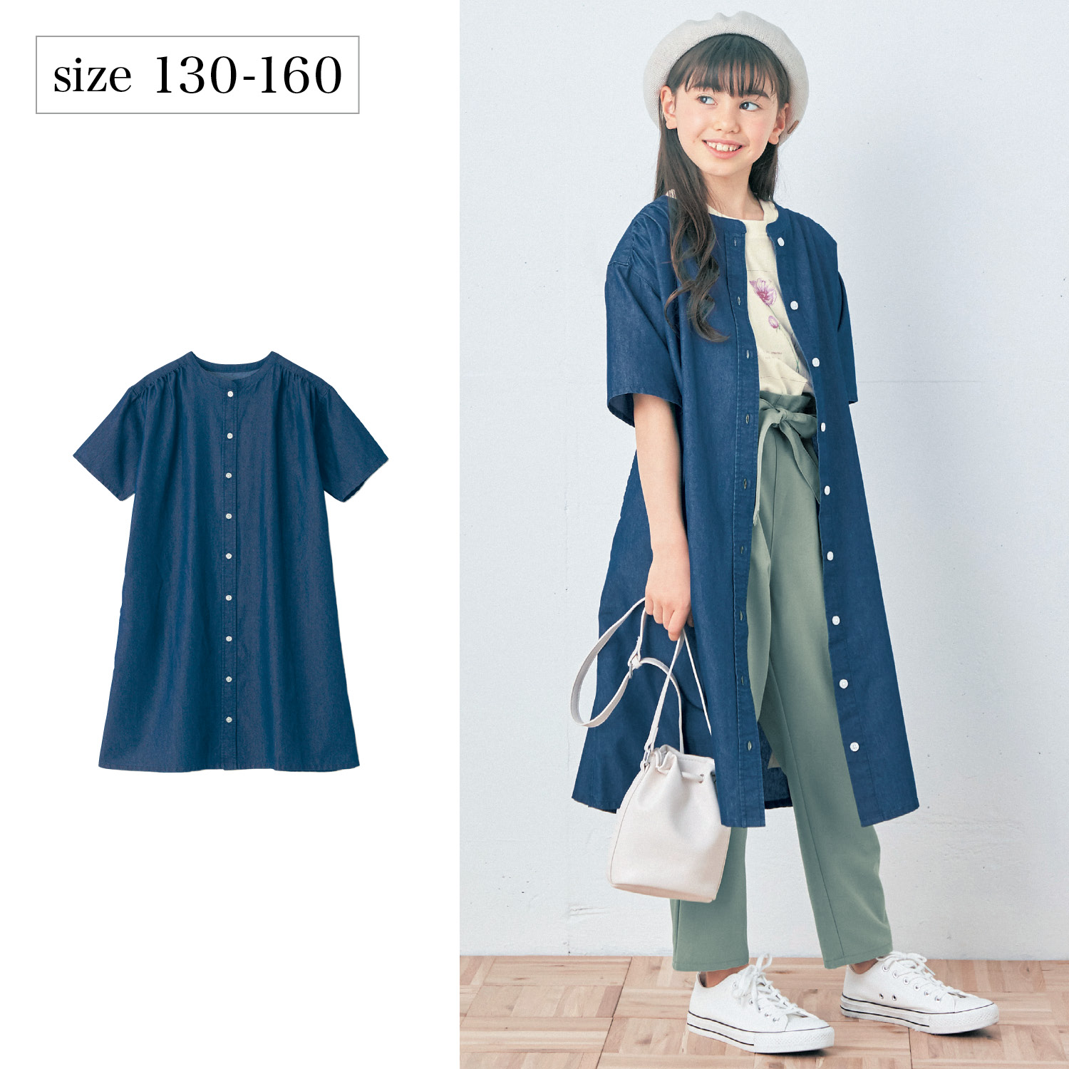トップ >ベルメゾンネットの紹介 >ベビー、子供用品 >【ベルメゾン】バンドカラーギャザーライトデニムシャツワンピース 【子供服 半袖】