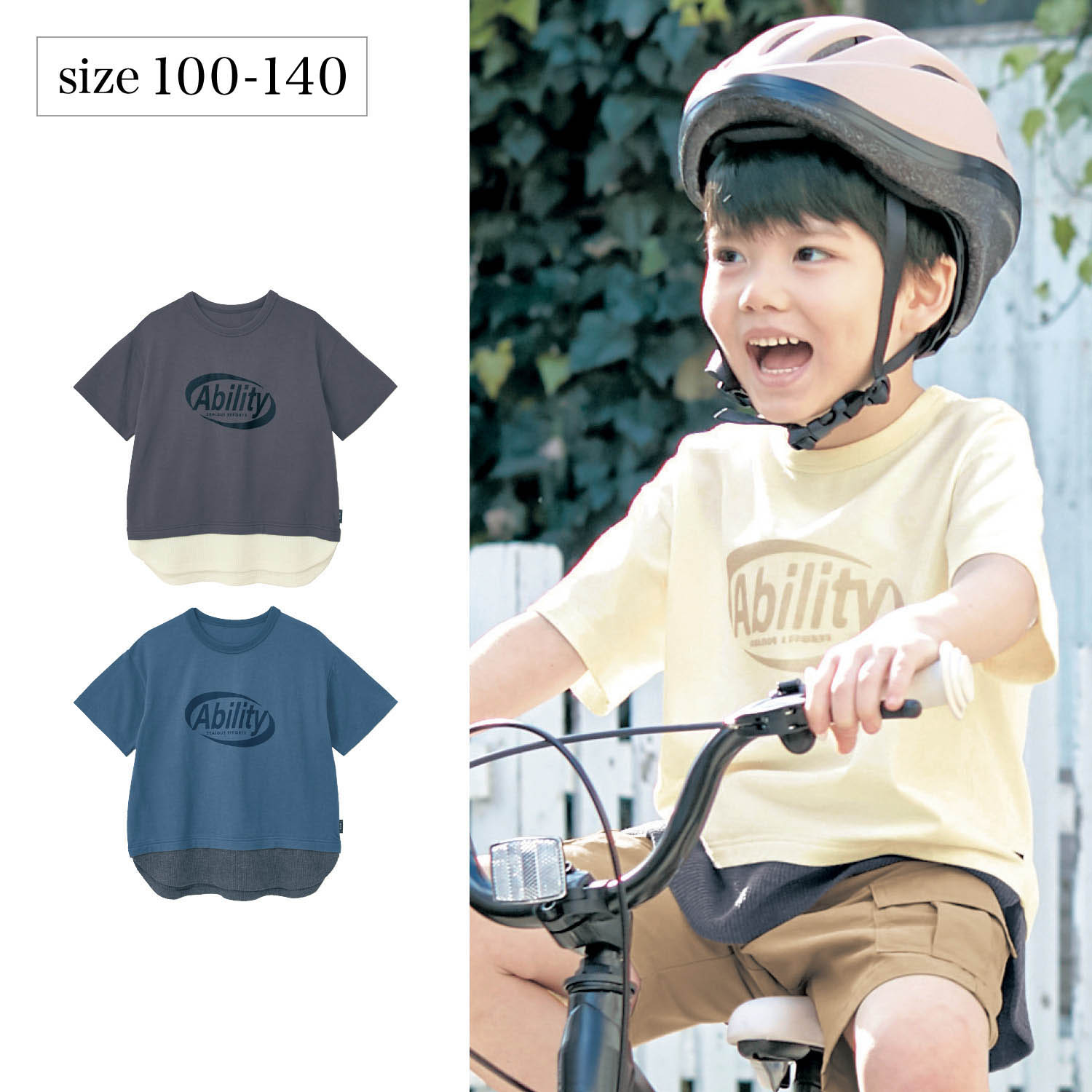 ―デザイン・スタイリング―・Tシャツを2枚重ねたようなこなれ感が一枚で完成・フロントロゴが身生地にさり気なくなじんでいるのもクール―素材―・身生地はソフトな肌ざわりの綿100%天竺素材・裾は表情のあるワッフル素材―機能―・油性ペンで直接書けてにじみにくいお名前スペース付きGITA(ジータ)安心して着せたいママと、毎日気持ちよく着たいコドモ。みんなの思いと一人ひとりの成長に寄り添って。こだわりの機能と豊富なサイズ、デザインバリエーションが魅力のオリジナルブランド