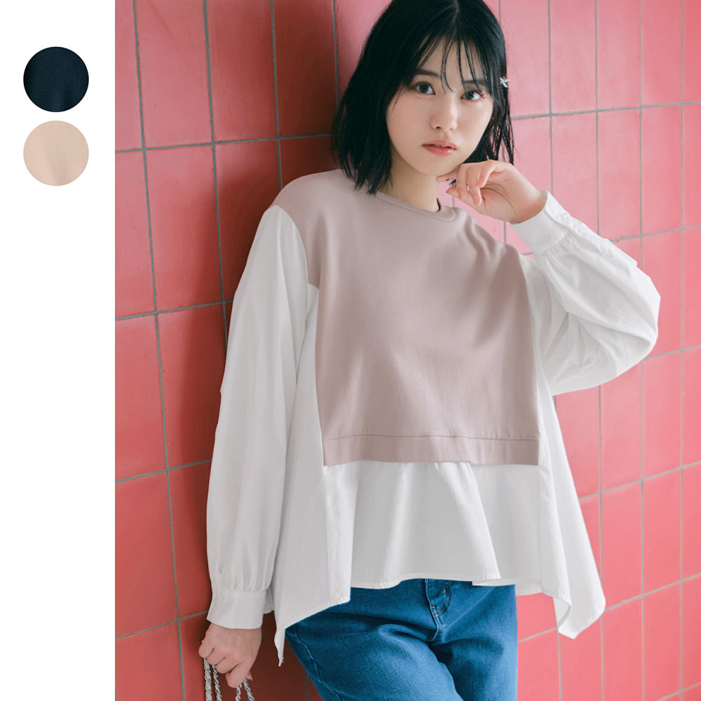 ―デザイン・スタイリング―・ベスト×シャツのレイヤード風デザイン・ふんわりギャザーの裾フレアが女の子らしい・スキニーなどすっきりボトムスと好相性―素材―・ベスト部分は綿カットソー素材・シャツ部分は綿ブロード素材Papel lapiz(パペルラピス)ワタシの「好き」にフィットする、トレンドをおさえた好感度の高いおしゃれを提案するブランド。今のリアルなジュニア & ティーンの体形に合わせた独自のサイズを設定し、細部の着心地にもこだわりました。