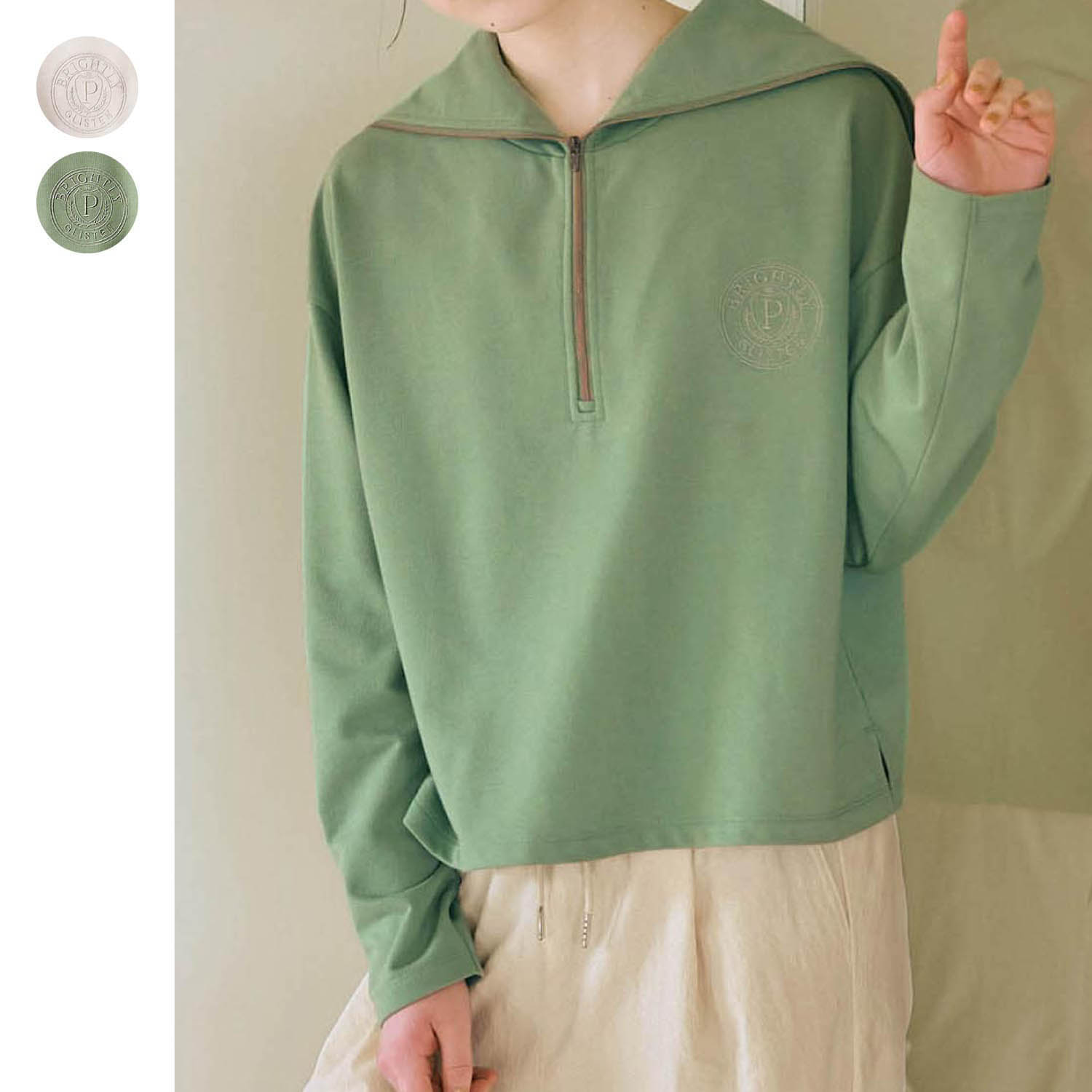 ―デザイン・スタイリング―・セーラーカラーのハーフジッププルオーバー・ジップは金属風で配色になっているところもポイント・リブなしで少しルーズな袖口がこなれた雰囲気・ショート & ワイドなシルエットも今っぽい・両サイドスリット入り・左胸には同色系のエンブレム風刺繍入り―素材―・通年使いやすい薄手のミニ裏毛素材Papel lapiz(パペルラピス)ワタシの「好き」にフィットする、トレンドをおさえた好感度の高いおしゃれを提案するブランド。今のリアルなジュニア & ティーンの体形に合わせた独自のサイズを設定し、細部の着心地にもこだわりました。
