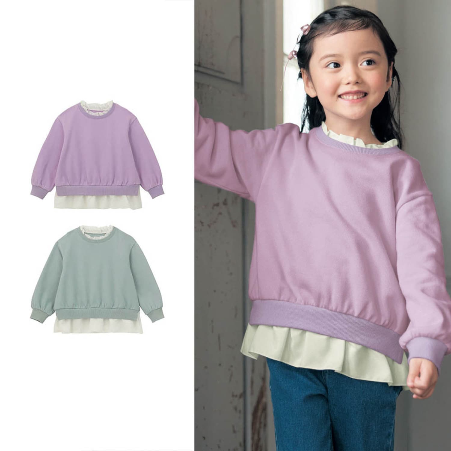 トップ >ベルメゾンネットの紹介 >ベビー、子供用品 >【ジータ/GITA】裾シフォン切替え裏毛プルオーバー 【子供服 長袖】