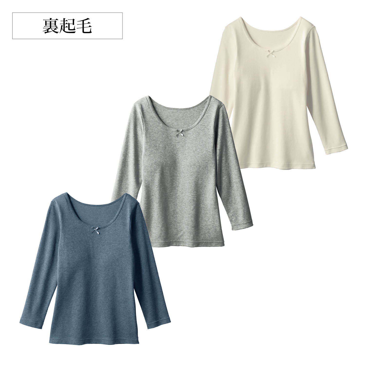 ―デザイン・スタイリング―・トップスの袖口から見えにくい九分袖・スクールにも重宝するシンプルなデザイン・胸元の飾りリボンが愛らしいアクセント―素材―・身生地は肌あたりの良い綿100%の裏起毛スムース・秋冬にうれしいあたたかな素材―機能―・バスト部分にストレッチ不織布の薄手クッションパッド入り・成長過程のバストを優しくホールドし、透けや刺激からカバー・前身頃のみ、締め付け感のないアンダーテープ付き