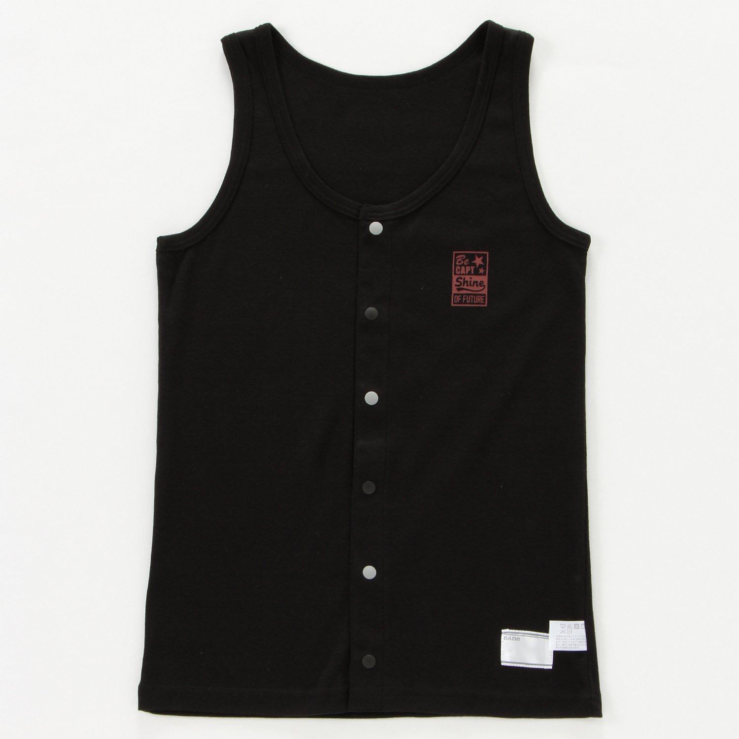 肌触りのいい綿100%素材を使用した、クール & シンプルなタンクトップ。「ベッドでも着替えやすいアンダーウェア開発計画」は、重症児のお子さまをお持ちのお母さまからの問い合わせをきっかけに立ち上がった、子供用の介護下着の開発・改良プロジェクト。障がい、病気、怪我にかかわらず、着心地がよく着替えがしやすく、気持ちが元気になって楽しくなることを目指したバリアフリーなインナーです。着脱のしやすさを考えた前開きのボタンは、金属アレルギーにも考慮しプラスチック素材を採用。また、お子さまが自分で着替える際、ボタンの掛け違いを防ぐために2色のボタンを交互に配置しています。洗濯ラベルが直接肌にあたらない外付け仕様や、入院時などに他のお子さまと洗濯物が混ざらないよう、お名前が書けるタグが付いているのもポイントです。
