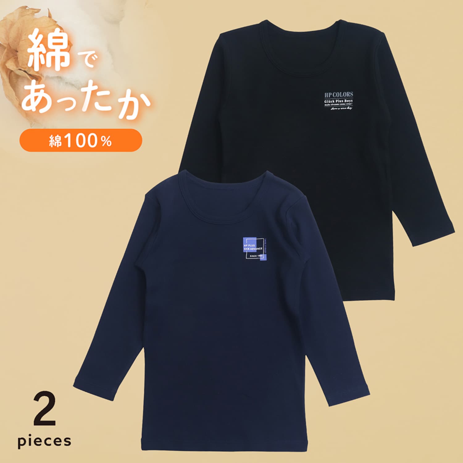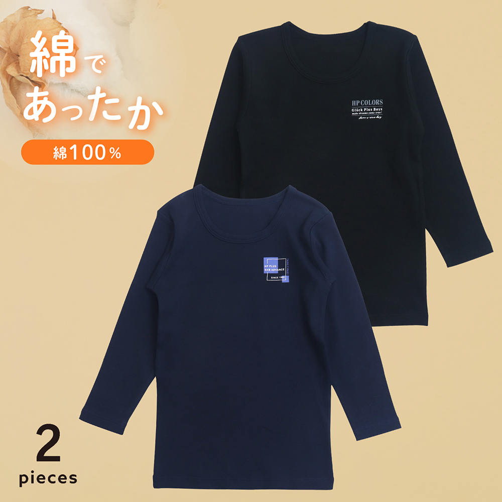 【SOKY】身生地は綿100%素材で着心地の良い スムース長袖2枚セット【子供肌着・男子】
