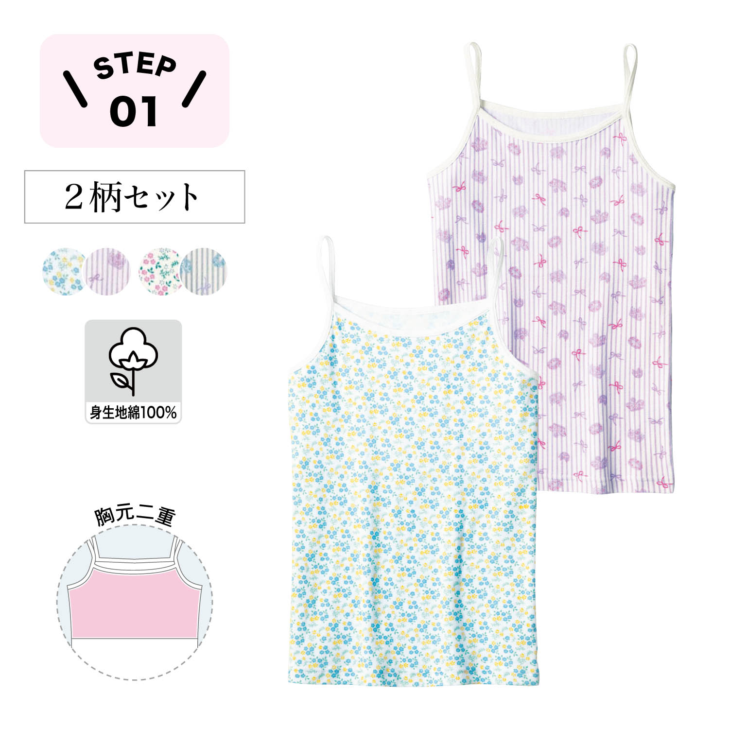 【ハミングシュシュ/Hummingchouchou 】胸元二重綿素材キャミソール2柄セット 【子供インナー】