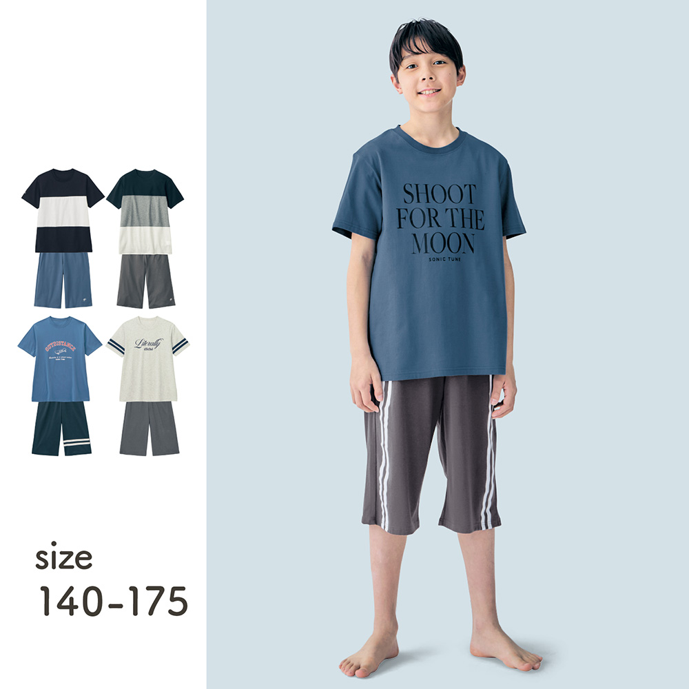 ―デザイン・スタイリング―・修学旅行などお泊りの際に・デイリー使い出来るオシャレなデザイン―素材―・ニオイの悩みを解決してくれる抗菌防臭素材のパジャマー機能ー・ウエストは取替え口つきの総ゴムタイプ・ボトムスの後ろ右にポケット付きSONIC TUNE(ソニックチューン)ソニックチューンは日常の着こなしにぴったりな「シンプルでカッコよく」を提案するオリジナルブランド。成長期の男の子に合わせたサイズや機能にこだわったアイテムを175サイズまで展開しています。