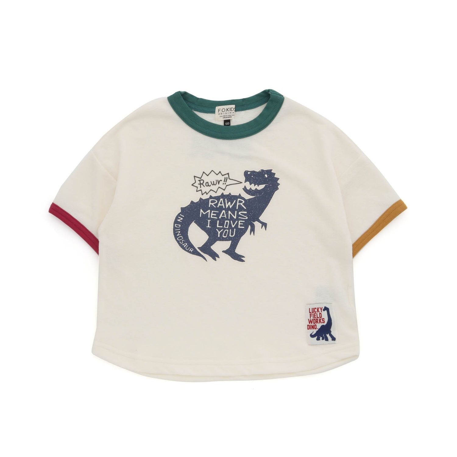 【エフオーキッズ/F.O.KIDS】恐竜柄リンガー半袖Tシャツ【子供服】