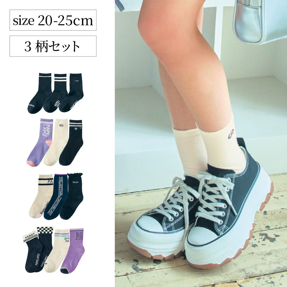 【パペル ラピス/Papel lapiz】クルー丈靴下3柄セット 【子供靴下】