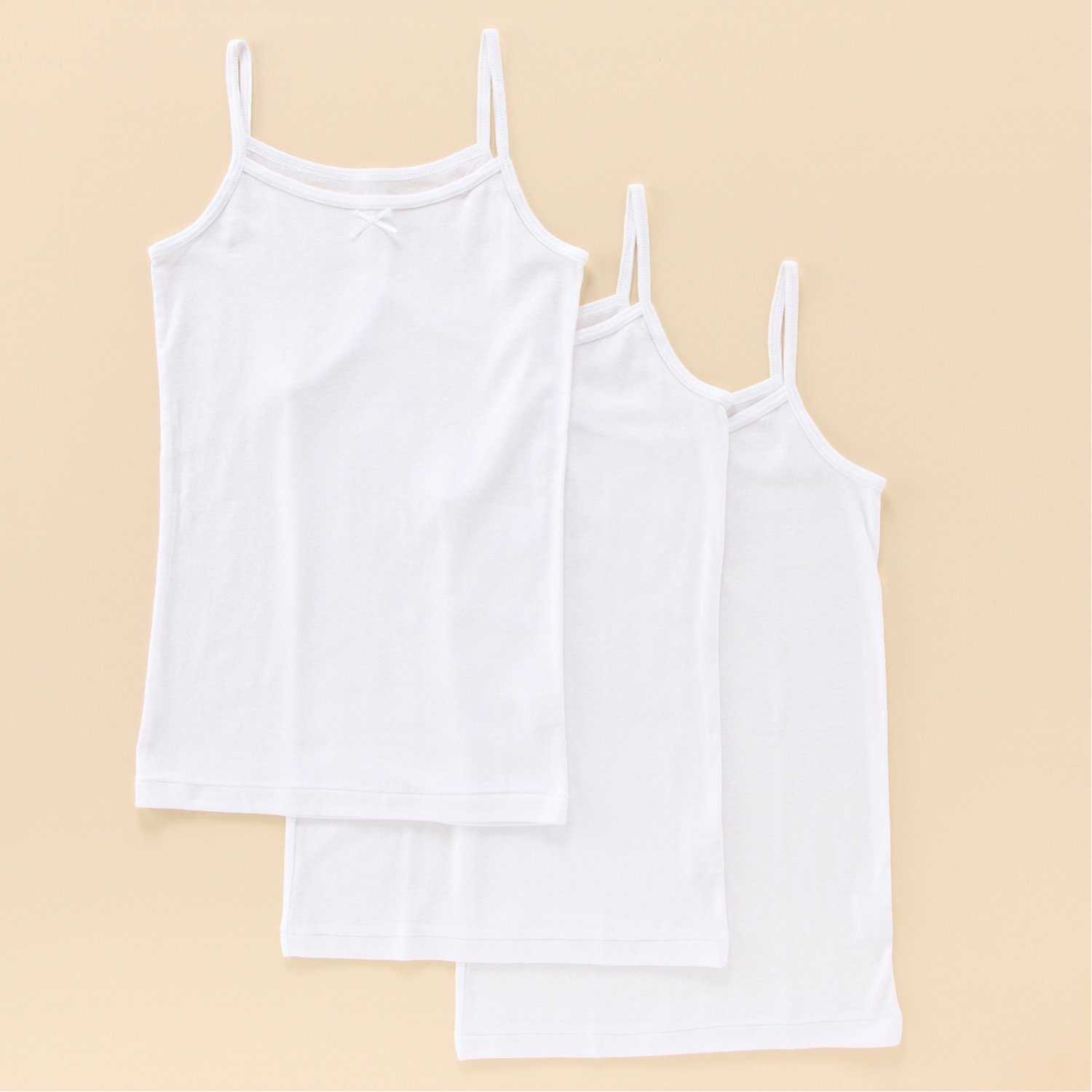 【おすすめのポイント】・肌触りの良い柔らかな綿100%素材・吸水速乾性があり汗をかいてもすぐに乾きやすい・内側にお名前が記入できるネームタグ付きかわいらしいリボンをあしらったキャミソール。洗い替えにうれしい3枚組でのご用意です。シンプルなデザインなので通園通学にもおすすめ。