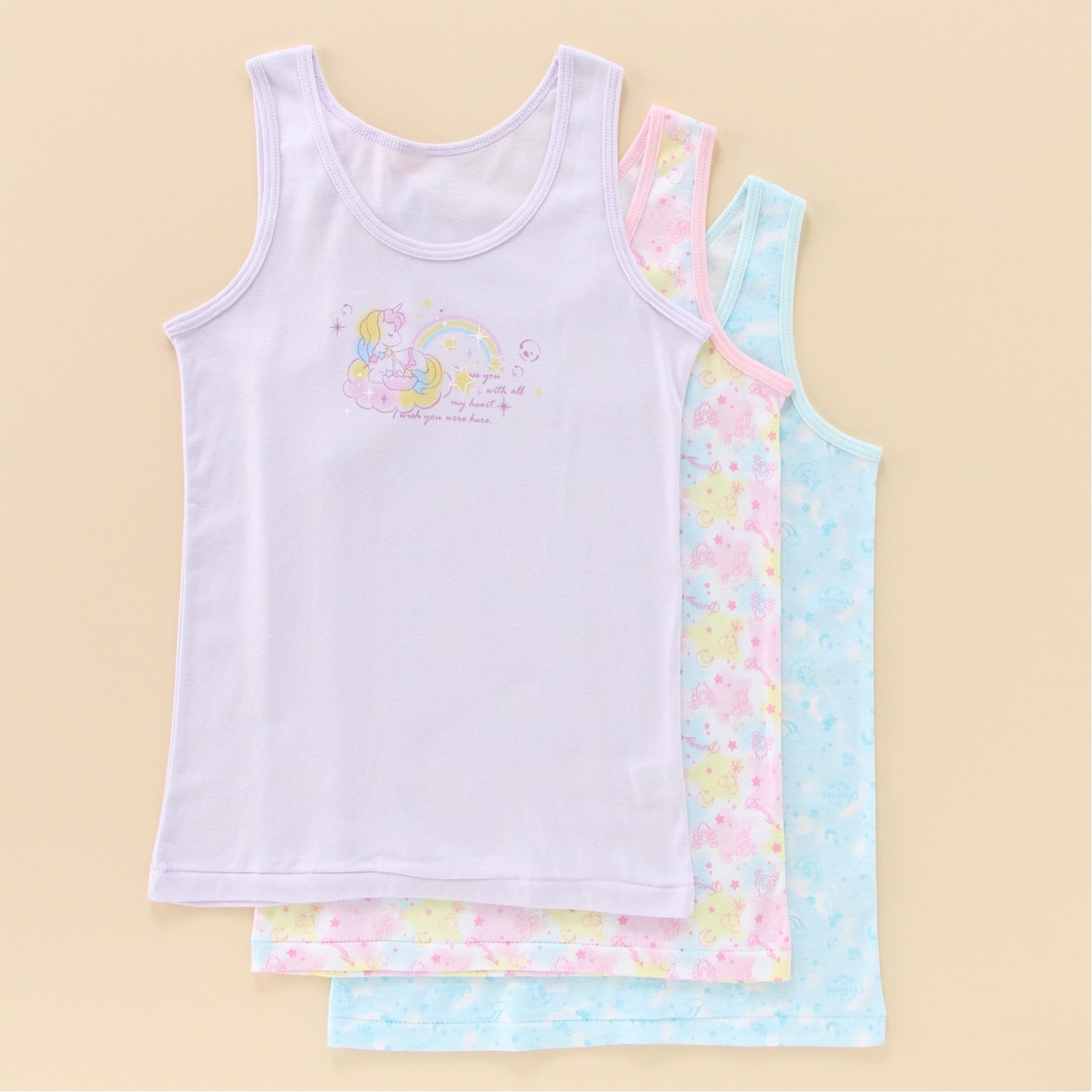 【おすすめのポイント】・お子様のお肌にやさしい綿100%素材・内側にお名前が書けるネームタグ付き・洗い替えに便利な3枚セットでご用意女の子の気分を盛り上げてくれる愛らしいタンクトップ。デザインやカラーが異なるので、選ぶ時間も楽しくなりそう。普段使いにおすすめです。