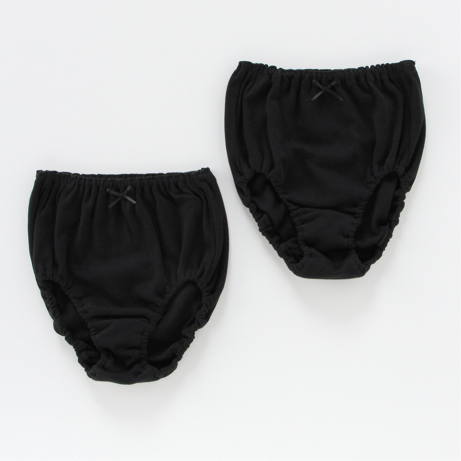 【おすすめのポイント】・やさしいはき心地の綿100%素材を使用・はき口 & 足口は、直接ゴムが肌にあたらない内ゴム仕様・内側にはお名前が記入できるネームタグ付き汚れが目立ちにくいシンプルな黒ショーツ。フロントにリボンをあしらい、女の子らしさをプラス。 2枚組なので洗い替えにとても便利です。