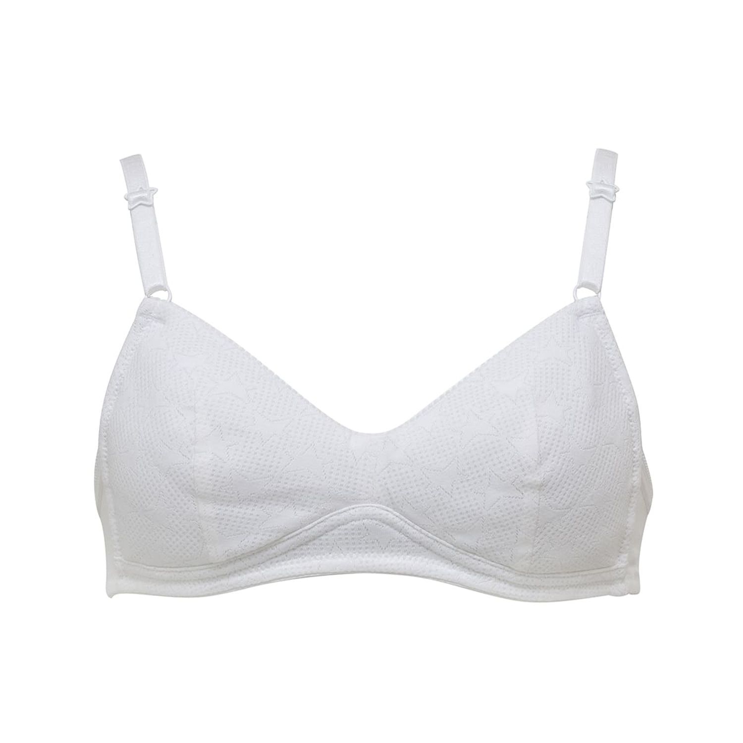 成長に伴ってバストが変化してきた女の子のインナーを導入期からサポートするファーストブラです。運動シーンだけでなく、学校生活や日常生活を含め幅広いシーンでお使いいただけます。ふんわりとしたカップを使用し成長期の胸をやさしく包み込みます。カップ裏 綿100%。かぶりタイプで後ろホックがないので、動いてもホックが外れる心配がありません。胸元すっきり三角ブラタイプなので、ブラジャーの形に慣れていく時期にぴったりです。身生地は吸汗速乾性素材を使用しているので、さらっとした肌あたりです。肩ひもは調整可能。お子さまの成長に合わせて細かな調整が可能です。ストラップ部分の星形アジャスターがかわいい