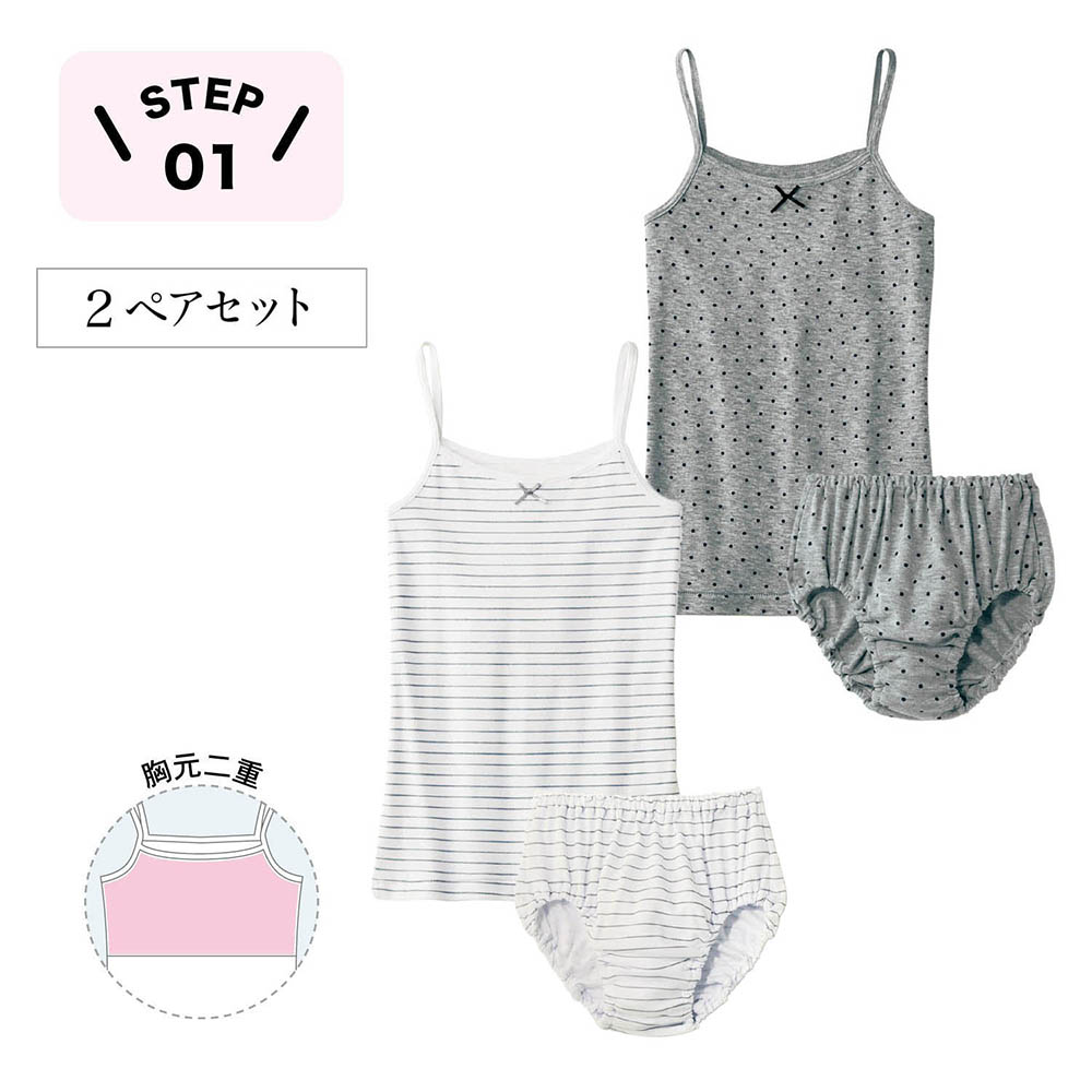 トップ >ベルメゾンネットの紹介 >ベビー、子供用品 >【ガロー/GARAU】胸元二重キャミソール & ショーツ2ペアセット 【子供服 子供インナー】