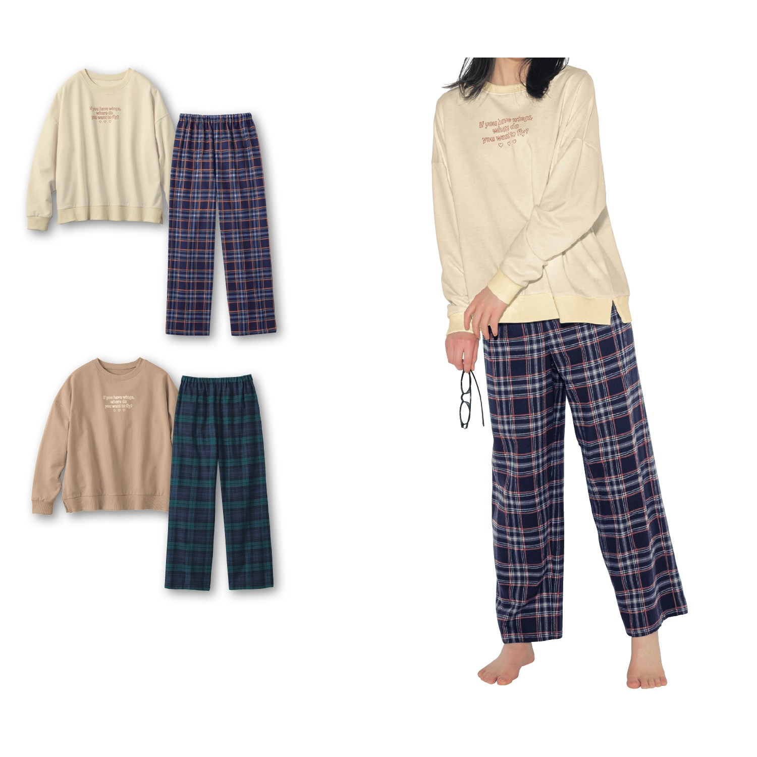 ―デザイン・スタイリング―・上下で異素材の組み合わせが楽しめるパジャマ・ロゴプリント×チェックのほっこりデザイン・どちらもゆるいサイズ感でリラックスタイムに最適・プルオーバーはインしやすい裾スリット入り―素材―・ミニ裏毛のプルオーバーでロングシーズン活躍・パンツはビエラ起毛を採用し、ほっこりあったか―機能―・ウエストは総ゴム仕様で楽ちんなはき心地Papel lapiz(パペルラピス)ワタシの「好き」にフィットする、トレンドをおさえた好感度の高いおしゃれを提案するブランド。今のリアルなジュニア & ティーンの体形に合わせた独自のサイズを設定し、細部の着心地にもこだわりました。