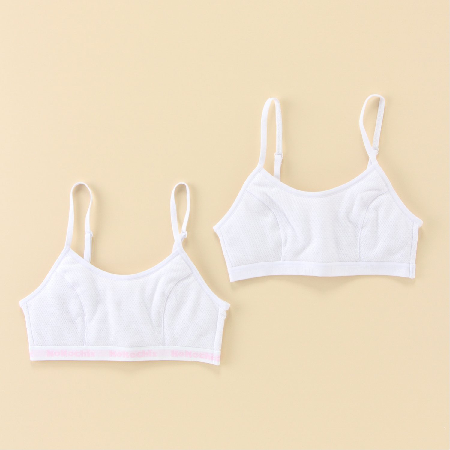 【おすすめのポイント】・バストをやさしくカバーするソフトカップ・汗を吸収しサラッと快適な状態を保つ吸水速乾素材・内側にお名前が記入できるネームタグ付き・洗い替えに便利な2枚組アウターに響きにくいソフトカップを内蔵したハーフキャミトップ。肩ひもはお子さまに合わせて長さを調節できます。デイリーユースにうれしい2枚組のご用意です。