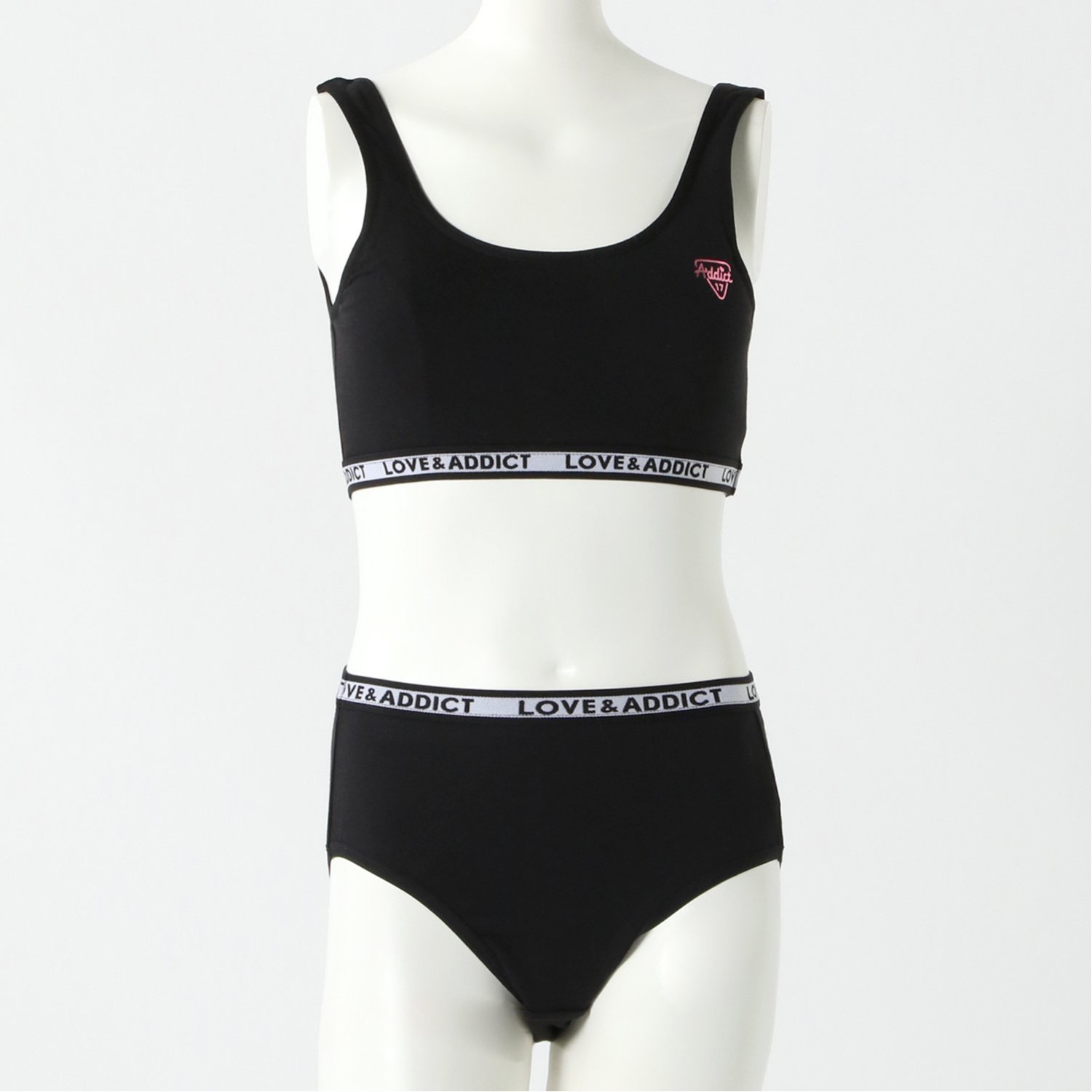 【おすすめのポイント】・吸水速乾性がありサラリとした着用感をキープ・アンダーやはき口には英字ロゴ入りのアウトゴム・内側にお名前が記入できるネームタグ付き上下セットで着用できるハーフトップ & ショーツです。ハーフトップはソフトカップ付きで、大きくなり始めたバストをやさしくホールド。柔らかな風合いの綿混素材でつけ心地も快適です。