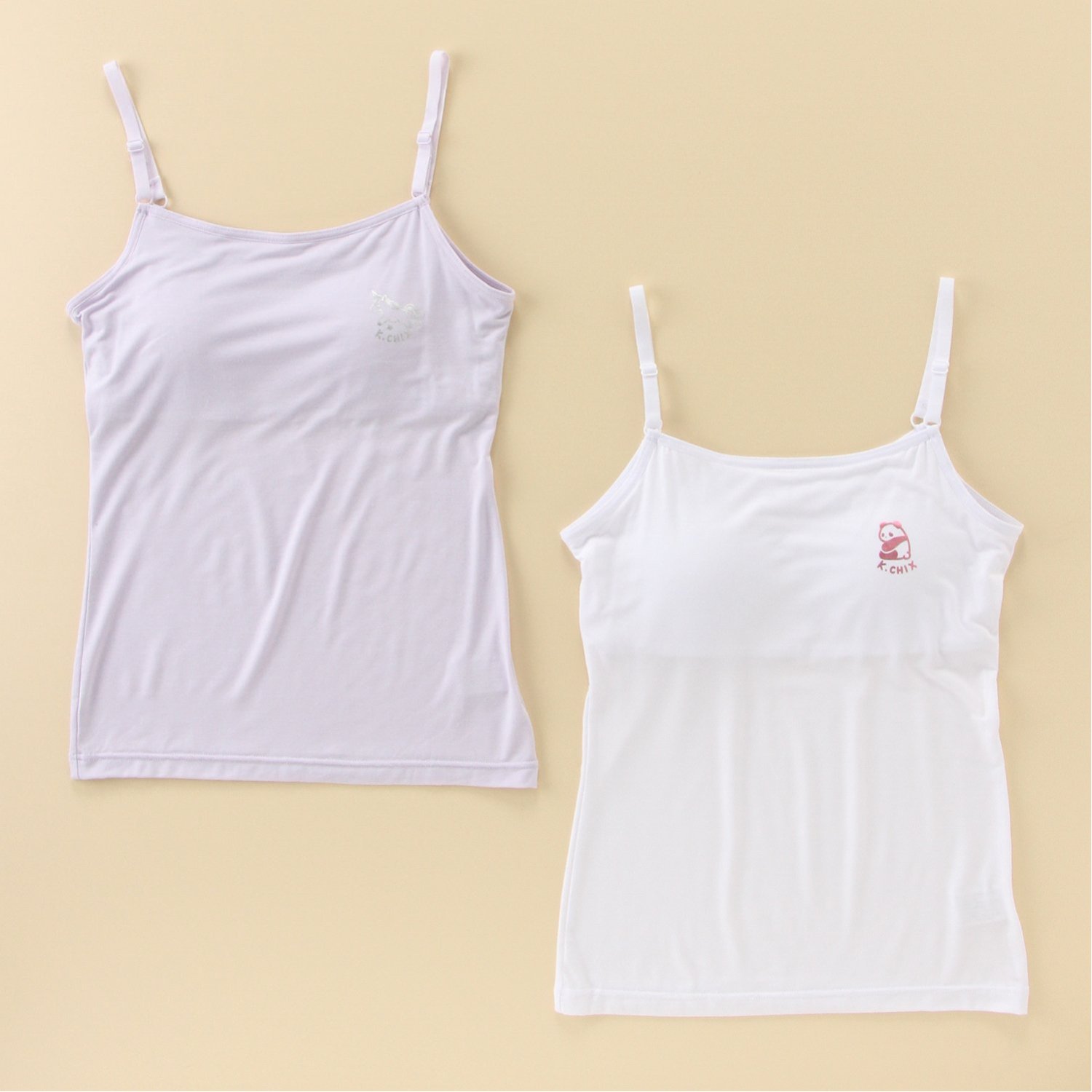 【おすすめのポイント】・肌に触れるとひんやりと感じる接触冷感素材・サラリとした着用感を保つ吸水速乾効果・ふくらみはじめたバストをやさしくカバー・内側にお名前が記入できるネームタグ付き成長に合わせて長く着られる、取り外し可能なカップ付きタンクトップ。接触冷感素材なので、汗ばむ季節も快適に着用できます。デイリーユースにうれしい2枚組。