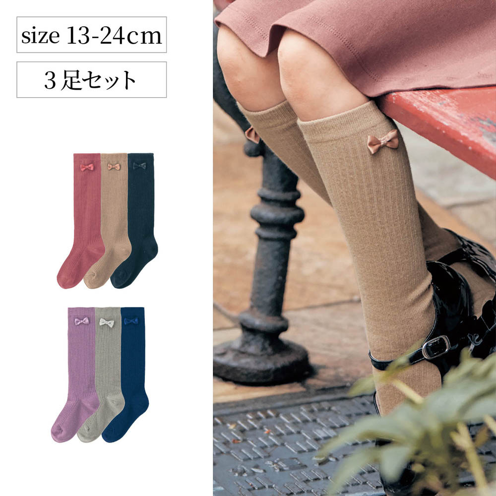 トップ >ベルメゾンネットの紹介 >ベビー、子供用品 >【ジータ/GITA】リボン靴下3足セット(ハイソックス) 【子供靴下】