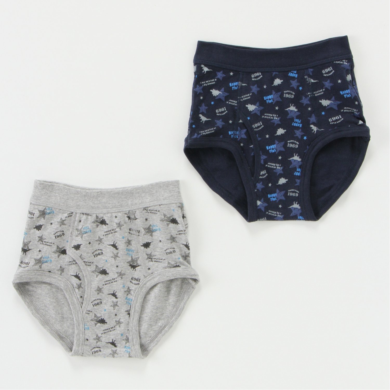 【おすすめのポイント】・柔らかな風合いの綿100%素材を使用・継ぎ目のない、やさしい肌あたりのはき口ゴム・内側にお名前が記入できるネームタグ付き・洗い替えに便利な2枚組をご用意男の子の好きな恐竜をモチーフにした総柄ブリーフ。はき込み深めのシルエットで、お腹が出にくいのがポイントです。デイリー使いにぴったりな2枚組。