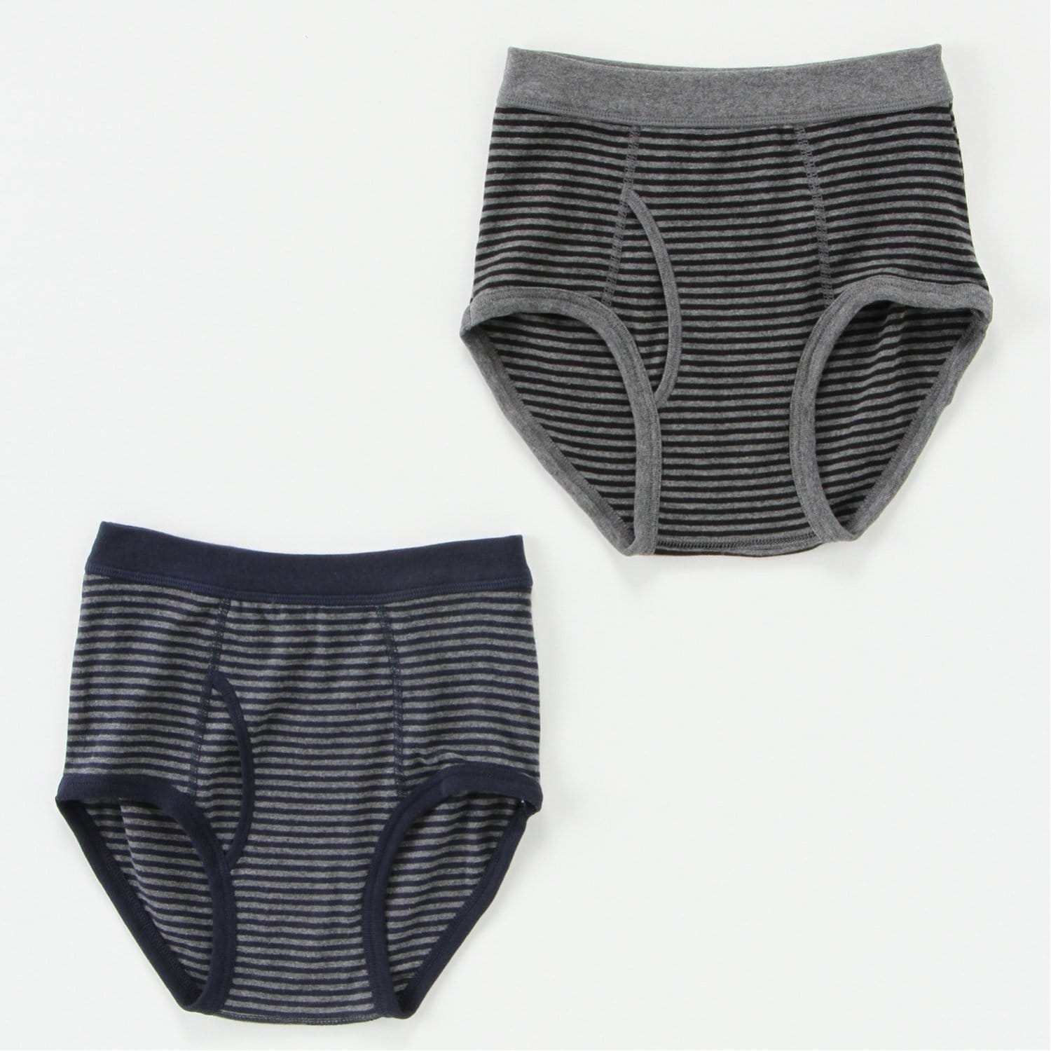 【おすすめのポイント】・身生地には柔らかな風合いの綿100%素材を使用・継ぎ目のない、やさしい肌当たりのはき口ゴム・内側にお名前が記入できるネームタグ付き・洗い替えに便利な2枚組をご用意カジュアルなボーダー柄のブリーフです。はき口 & 足口の無地切替えがアクセント。肌にやさしい綿100%素材で、通年を通してお使いいただけます。