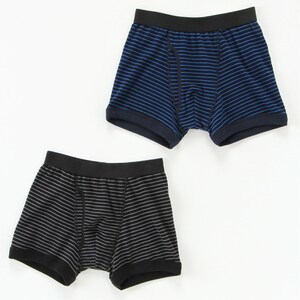 【おすすめのポイント】・ドライタッチでサラリと爽やかな着用感・脇に縫い目がなく、やさしい肌当たり・内側にお名前が記入できるネームタグ付き・洗い替えに便利な2枚組をご用意デイリー使いにうれしいシンプルボーダーの前開きボクサーパンツです。汗ばむ季節もサラリと快適な着用感を保ちます。汗ばむ季節や体育の時間、部活動におすすめ。